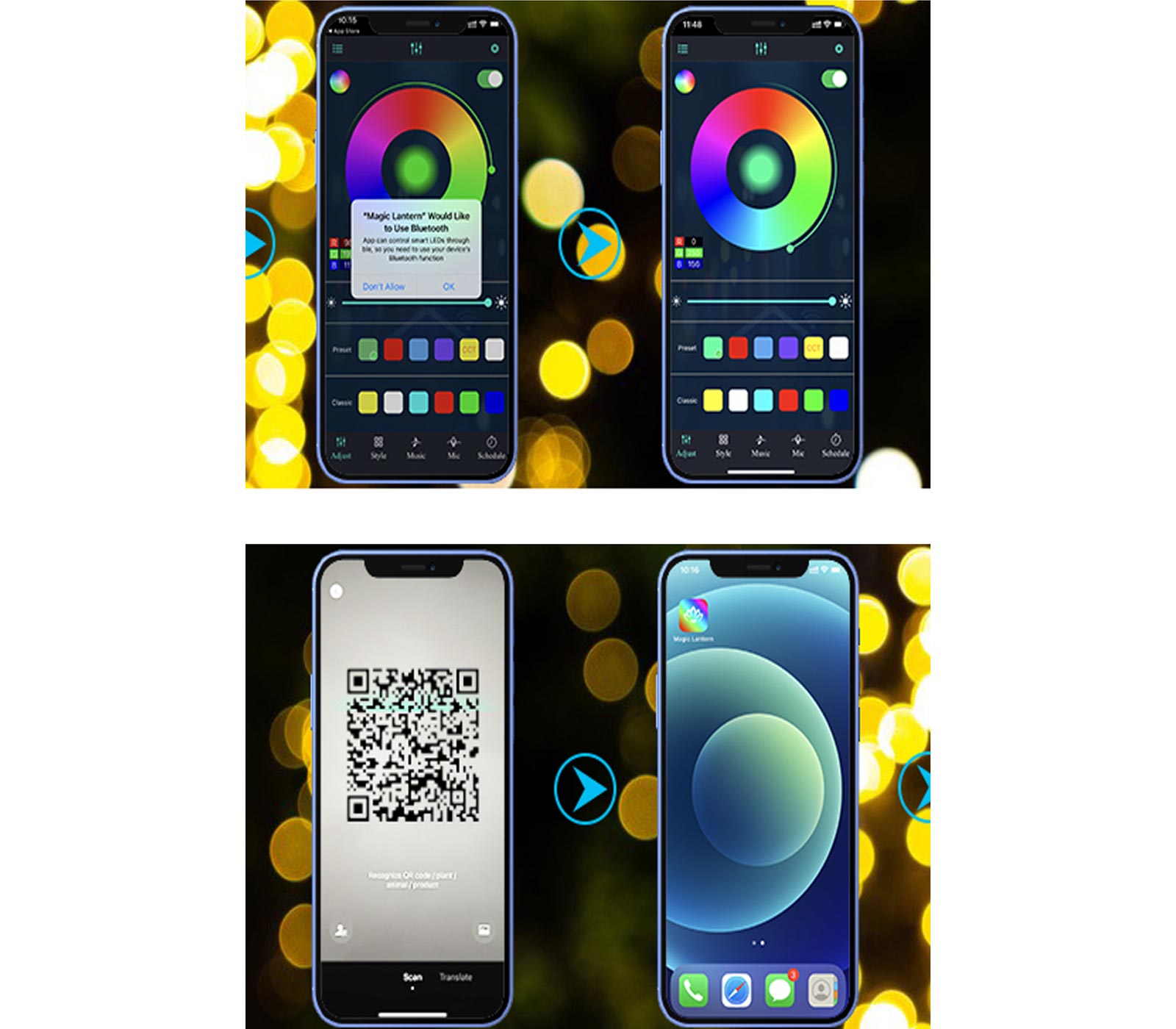 Dotata di tecnologia Bluetooth 4.0 è possibile gestire questa catena luminosa sia tramite smartphone scaricando l'APP "MAGIC LANTERN" oppure attraverso il telecomando in dotazione. La catena è completamente impermeabile con un grado di protezione IP65 resistente alle intemperie e gli agenti atmosferici ideale per ambienti esterni. Completamente a risparmio energetico viene fornita completa di un pannello solare con batteria interna ricaricabile che consente un autonomia di circa 8/10 ore di luce fissa.