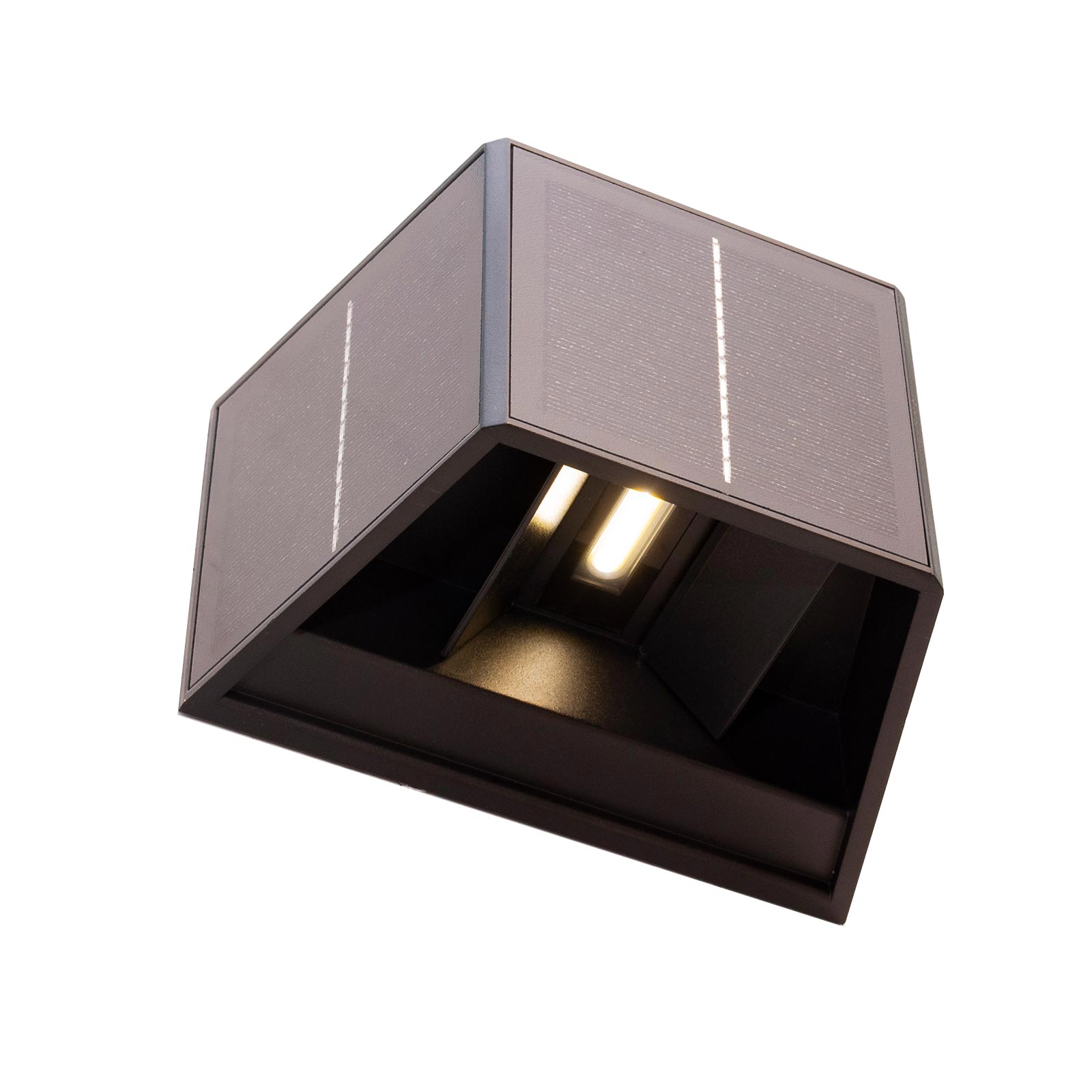 Innovativo applique solare UP & DOWN dotato 3 pannelli solari che ricaricano la batteria interna abbattendo i costi sulla spesa energetica, dotato di sensore crepuscolare ha doppie alette regolabili per un effetto luminoso particolare su pareti e muri, le alette sono regolaili con un agnolo di luce che va da 0 a 100 gradi, questo consente la massima personalizzazione secondo il proprio gusto.