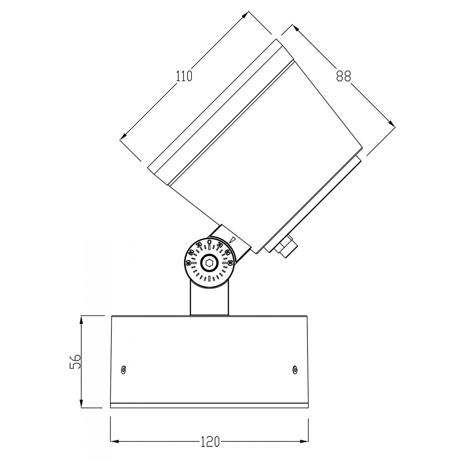 Dimensione faretto: 88mm x Ø 110mm - Diametro del faretto: Ø 110mnm - Dimensione base di fissaggio: 56mm x Ø 120mm