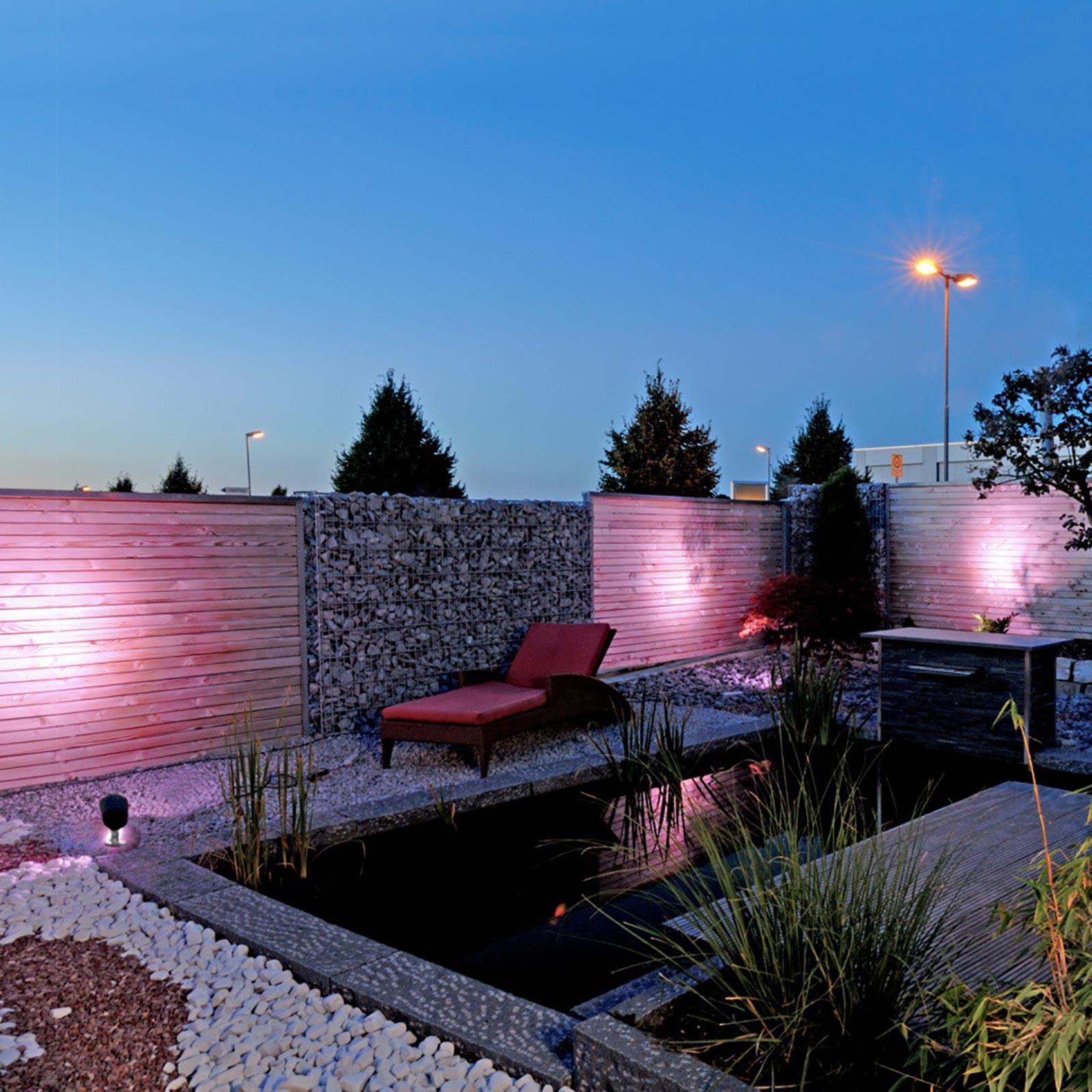 COLT faretto LED RGBW spot per esterno dotato di base di fissaggio può essere installato anche a soffitto o pareti per creare effetti di luce colorata in spazi esterni. Il faretto ha una potenza di 16W ed un'intensità luminosa di 780 lumen / 950 lumen con possibilità di scegliere la temperatura luce: RGBW + 3000K luce calda o RGBW + 5500K luce fredda.