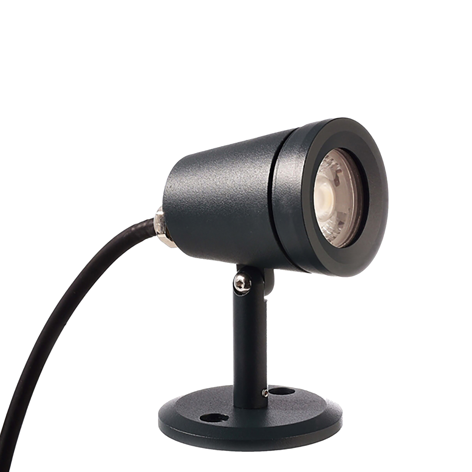 Inoltre è dotato di staffa inclinabile fino a 180 gradi per direzionare la luce secondo le proprie esigenze. La base di fissaggio slim consente un'installazione su tutte le superfici piane. Il faretto si alimenta a 230V tramite il cavo elettrico. Inoltre il faretto ha un angolo di luce stretto di 36 gradi ideale come luce mirata per illuminare oggetti.