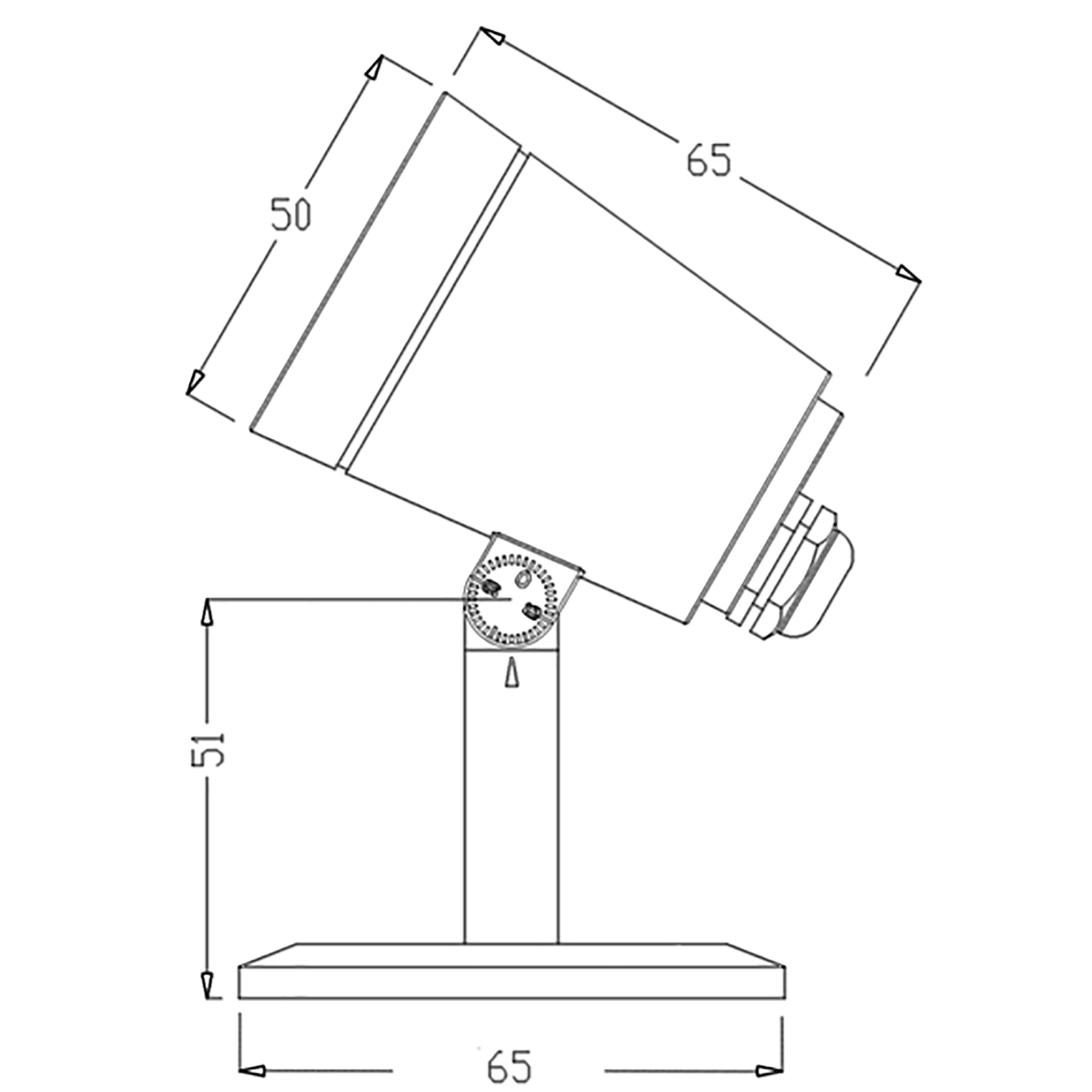 Dimensione faretto: 65mm x 120mm x 50mm - Diametro del faretto: Ø 50mnm - Dimensione base di fissaggio: 3mm x Ø 65mm