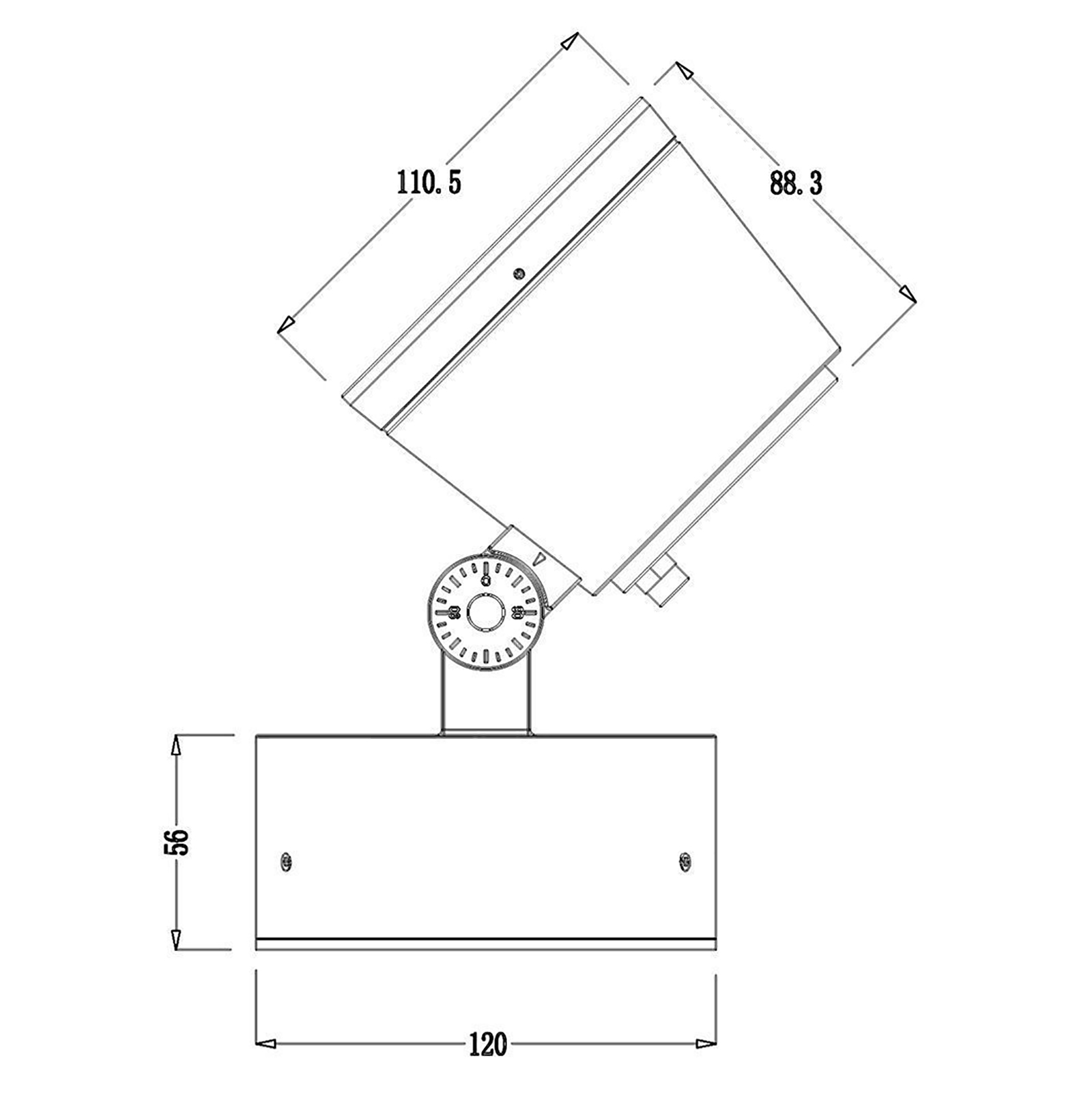 Dimensione faretto: 88.30mm x 220mm x Ø 110.50mm - Diametro del faretto: Ø 110.50mm - Dimensione base di fissaggio: 57mm x Ø 120mm