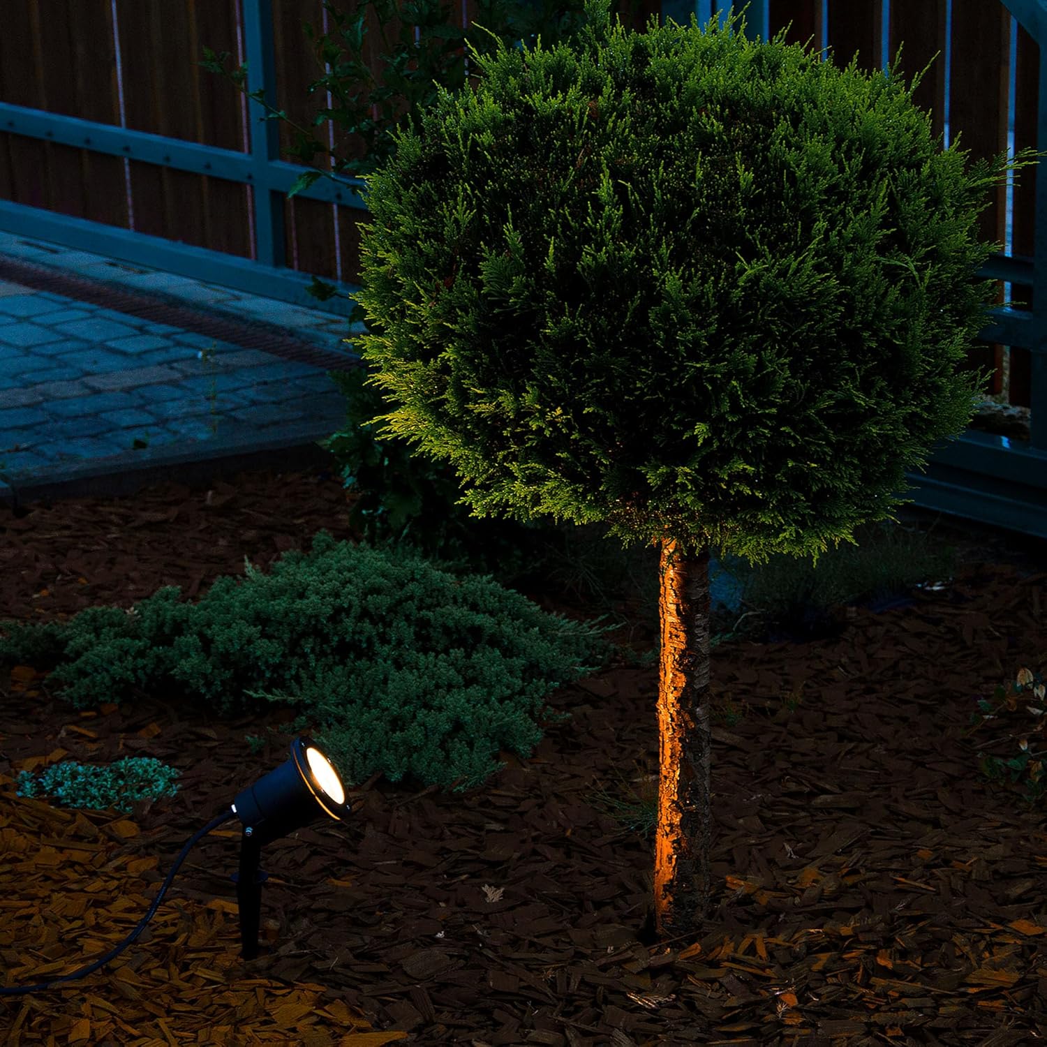 Installazione semplice grazie al picchetto in dotazione da piantare direttamente nel terreno, ma può essere fissato anche a parete o soffitto ed orientato sencondo le esigenze. Le sue caratteristiche lo rendono perfetto anche per la facciata di un'abitazione dove crea grande effetto visivo. Dotato di bloccaggio del faretto a vite, che garantisce maggiore stabilità della lampada al suo interno.