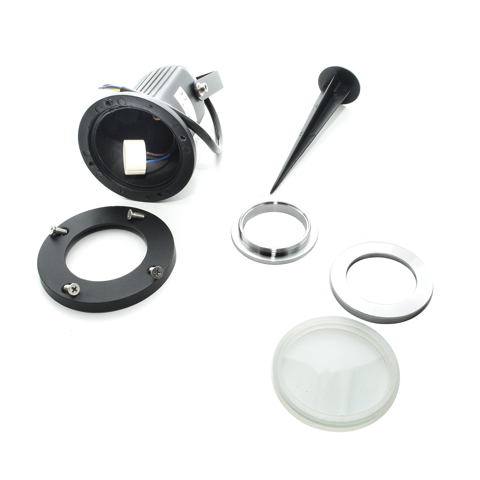 Realizzato in alluminio anti corrosivo ha un grado di protezione IP65 prettamente per uso esterno, resistente agli agenti atmosferici e alle intemperie. Integra al suo interno l'attacco GU10 ed è compatibile con la maggior parte di faretti e lampade GU10. La lampada è intercambiabile questo consente una facile sostituzione in caso di rottura a differenza di prodotti con LED integrati.