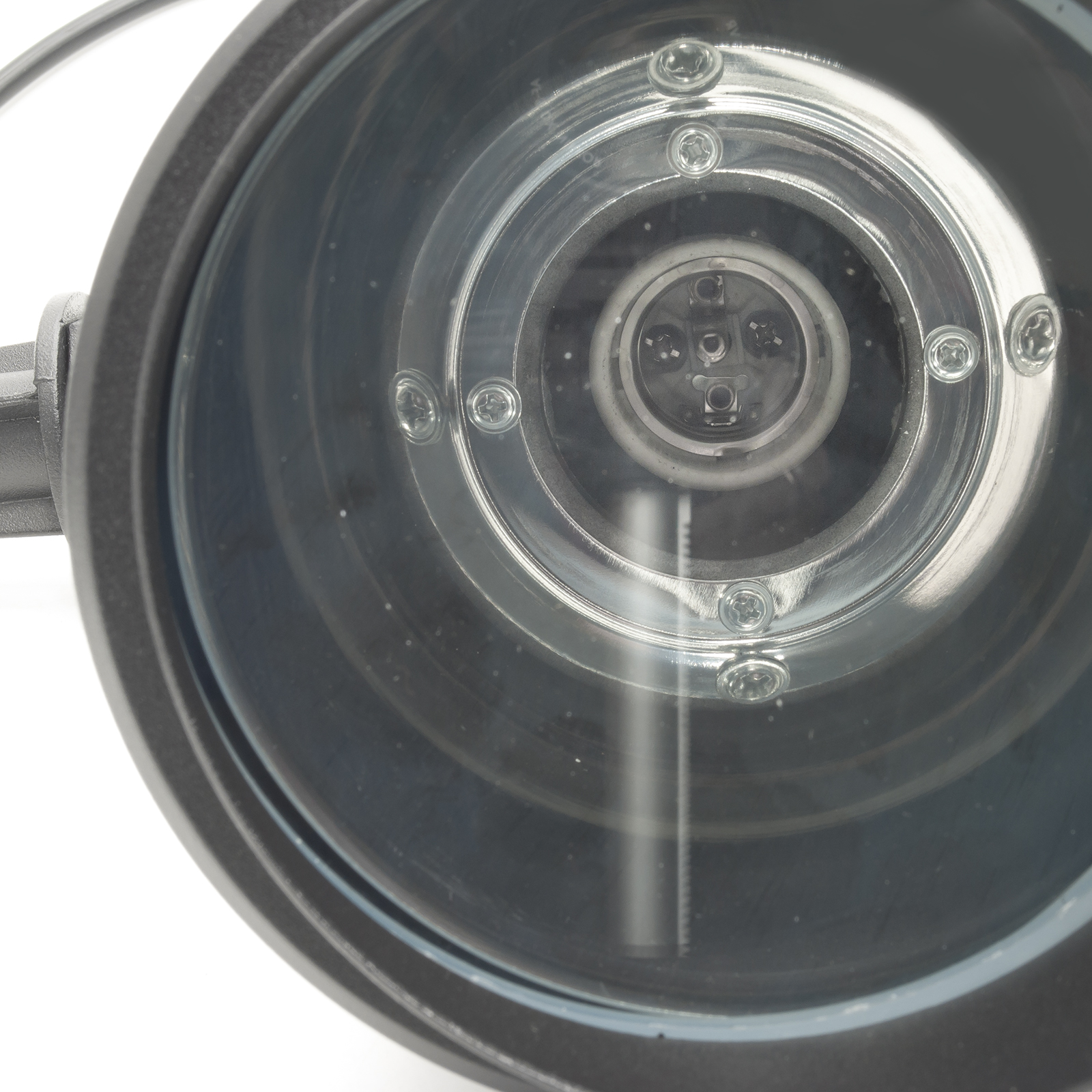 Si alimenta direttamente alla rete elettrica tramite il cavo a 230V - Dimensioni: lunghezza totale corpo proiettore: 24cm - Lunghezza picchetto: 21cm - Diametro campana: 15cm.