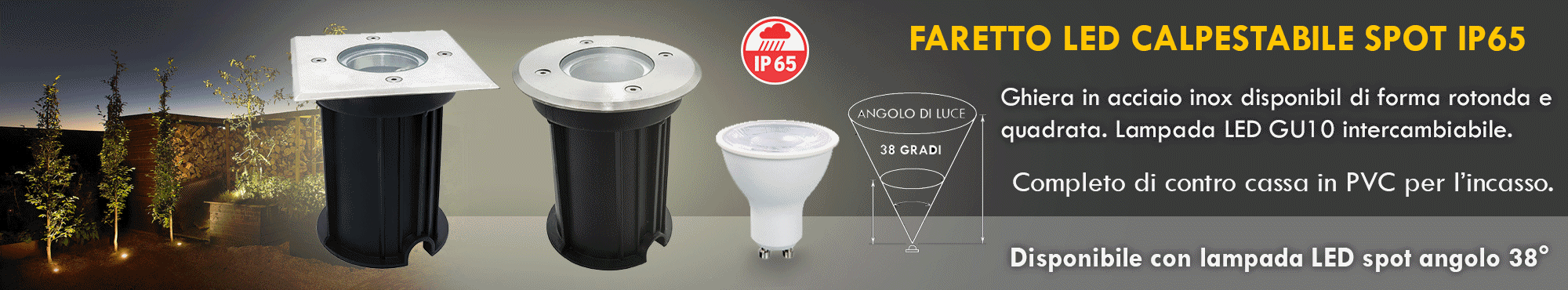 Il faro è disponibile anche con lampada LED SPOT GU10 5W luce 3000K o 4000K con angolo di luce stretto di 38 gradi adatta comue luce mirata per l'illuminazione di alberi, piante, cespugli, eleimenti archiettonici.