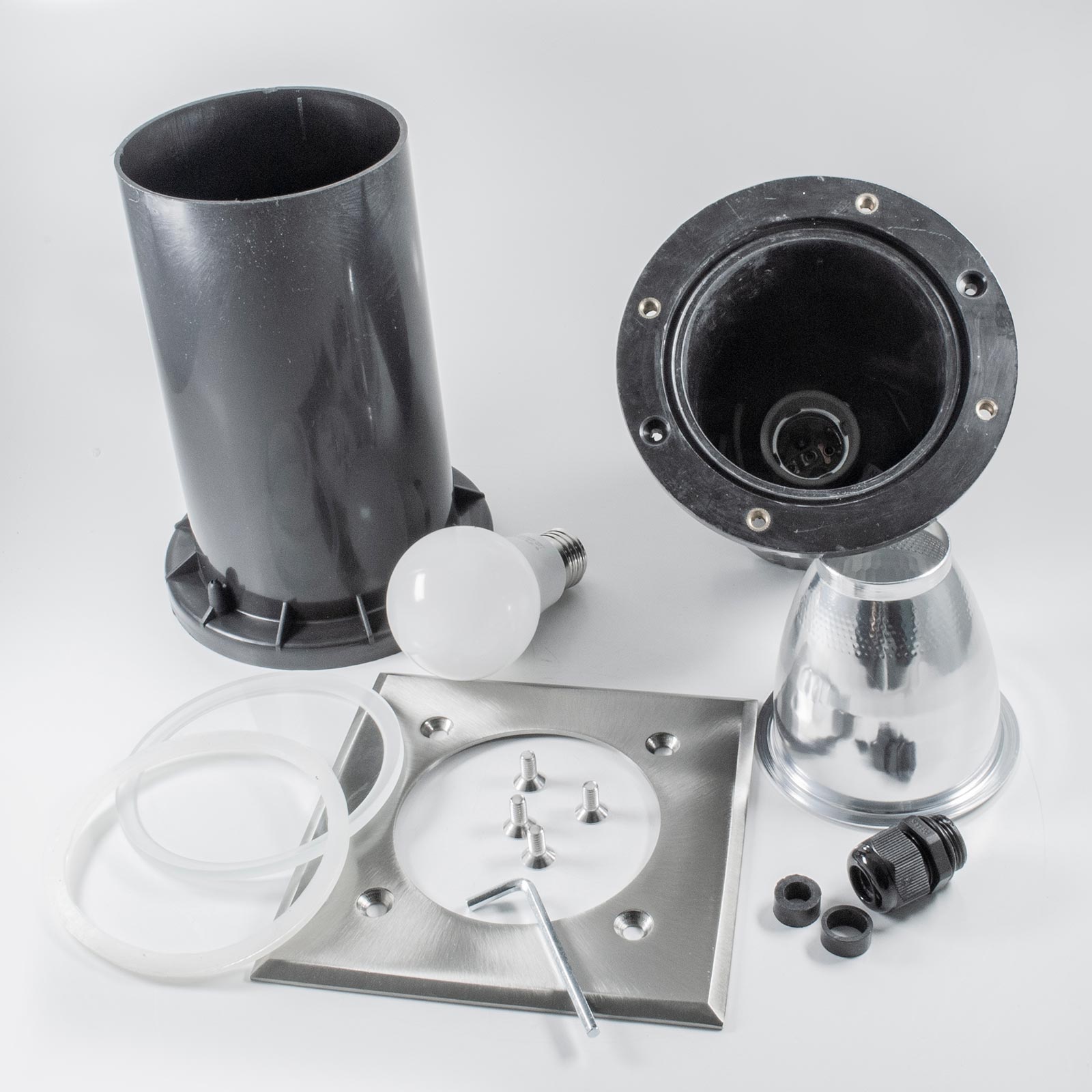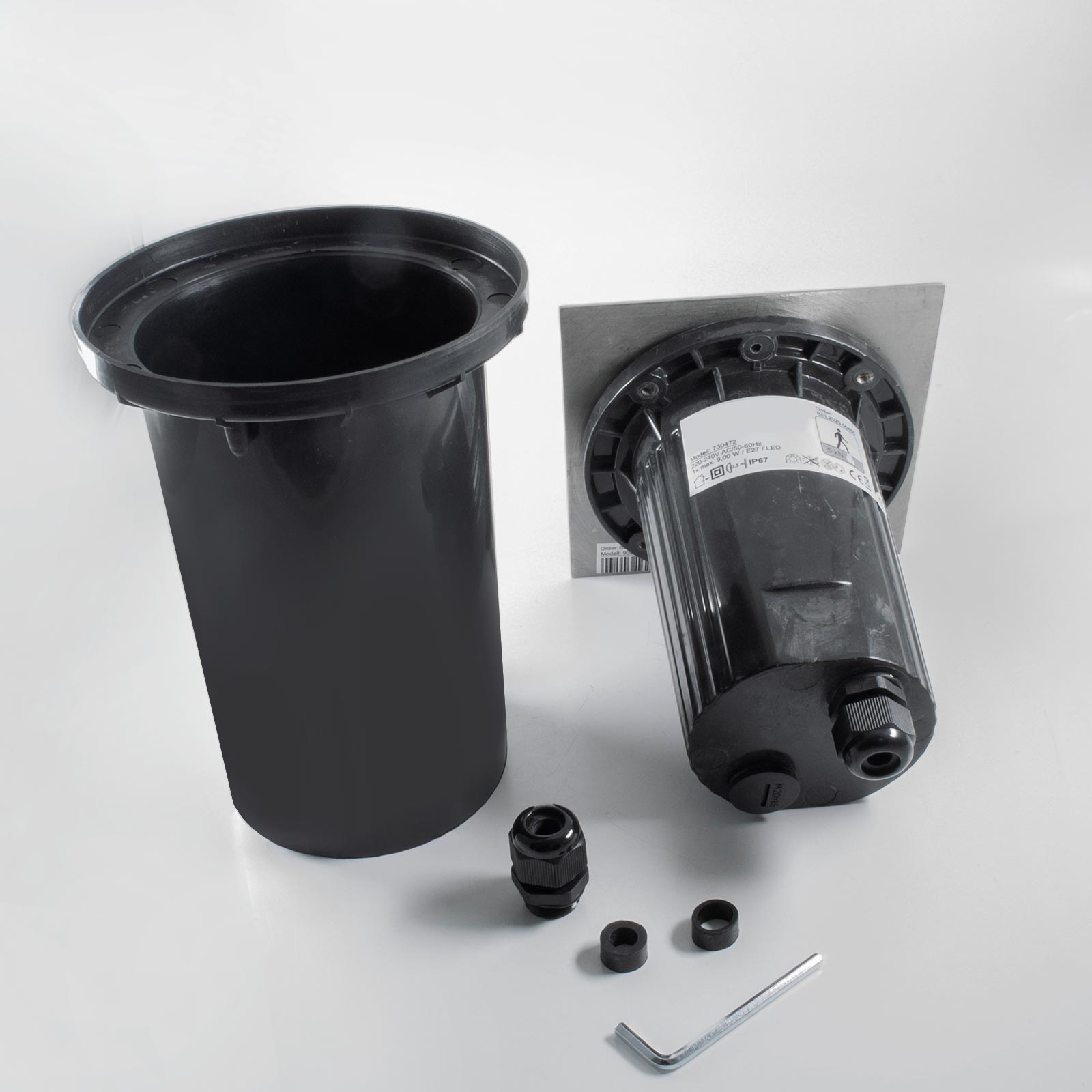 Le sue dimensioni compatte lo rendono adatto per l'incasso nel terreno o nel cemento, offrendo un'installazione discreta e professionale. Dotato di ingresso ed uscita ha la possibilità di collegare più fari in sequenza, si alimenta direttamente a 230V offrendo un'illuminazione uniforme e continua lungo il percorso desiderato.