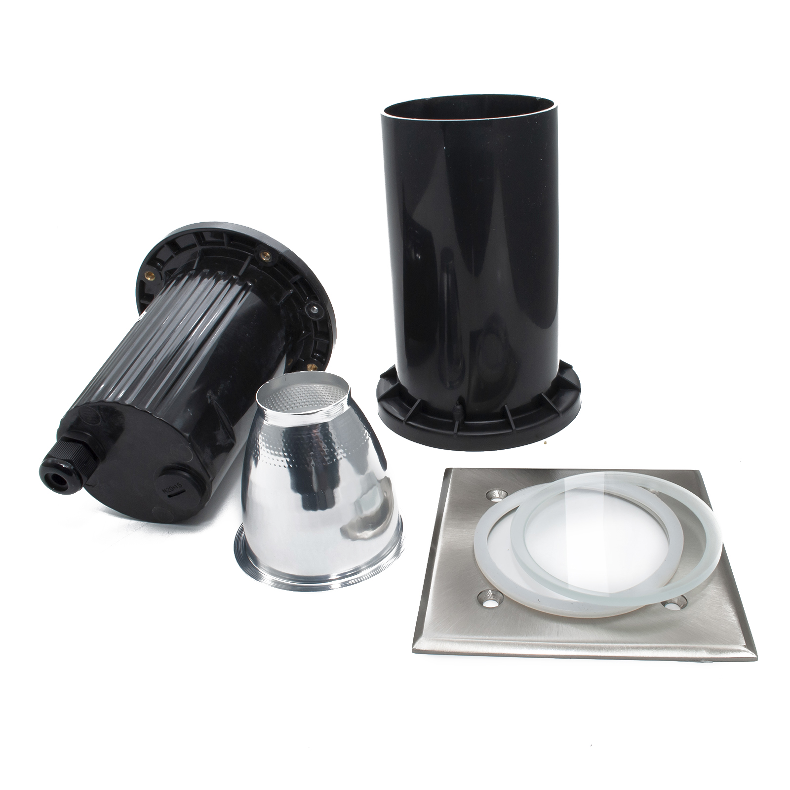 Le sue dimensioni compatte lo rendono adatto per l'incasso nel terreno o nel cemento, offrendo un'installazione discreta e professionale. Dotato di ingresso ed uscita ha la possibilità di collegare più fari in sequenza, si alimenta direttamente a 230V offrendo un'illuminazione uniforme e continua lungo il percorso desiderato.