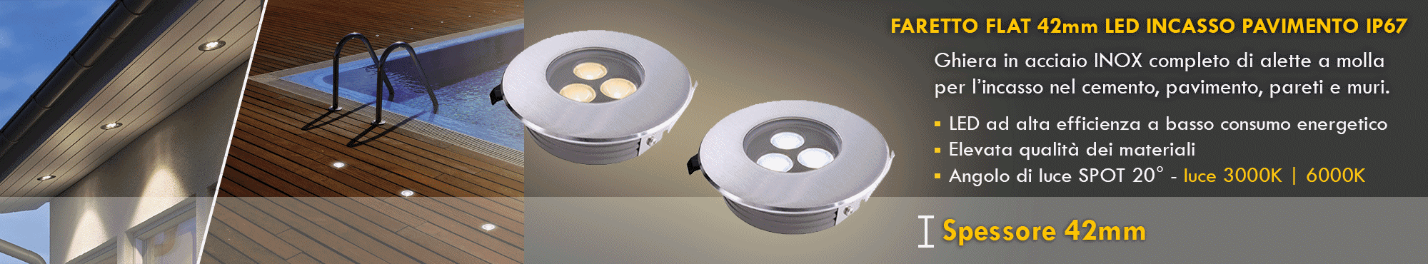 Ideale per illuminare ambienti esterni ha un grado di protezione IP67 adatto per resistere alle intemperi e gli agenti atmosferici. Indicato per l'incasso a terreno, sabbia, prato e soprattutto a pavimento perché ha un altezza max di appena 42mm.