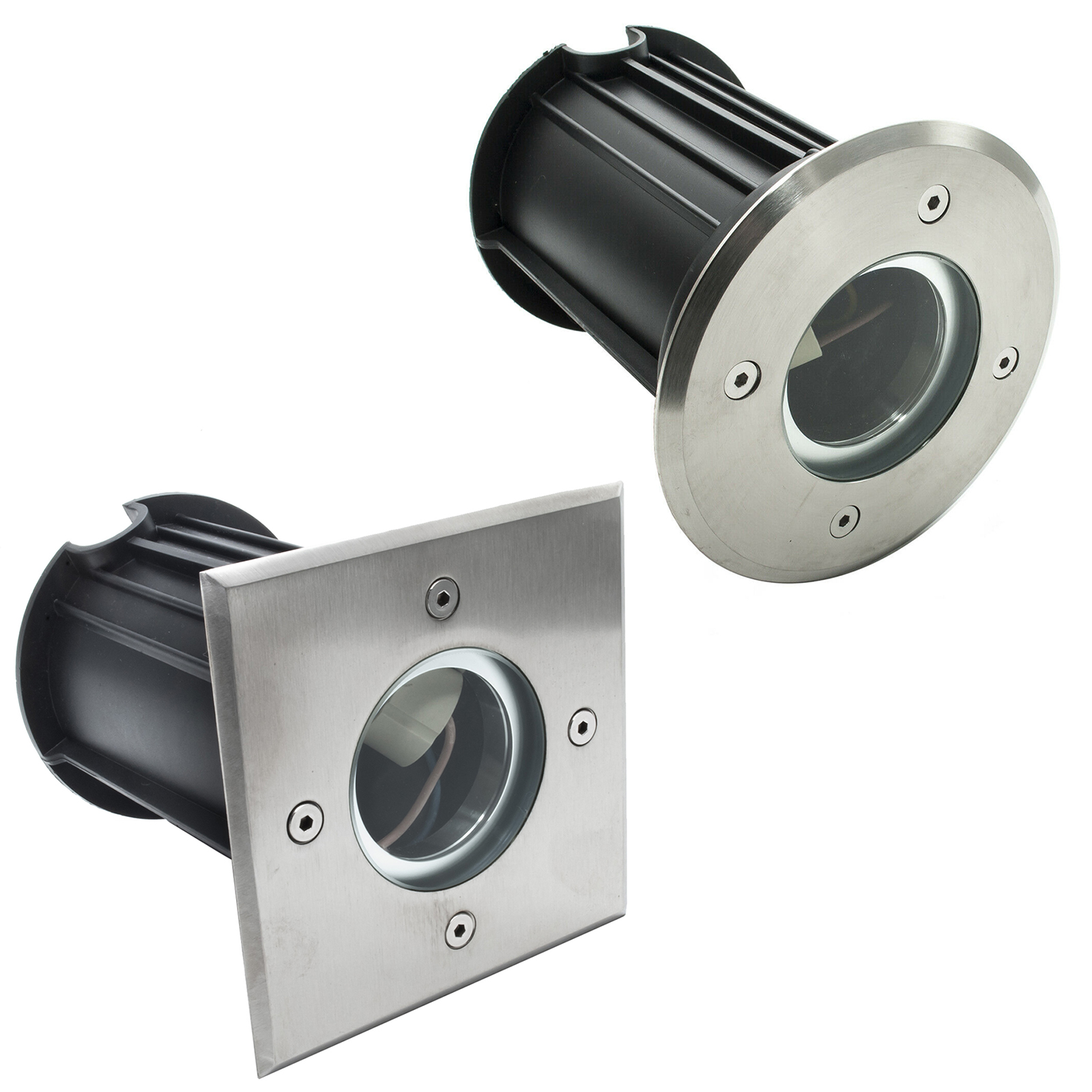 Il faretto ha la ghiera in acciaio inox ed un grado di protezione IP65 resistente alle intemperie e gli agenti atmosferici. Disponibile in 2 forme: rotondo o quadrato. Dotato di portalampada con attacco GU10 supporta faretti e lampadine con attacco GU10.