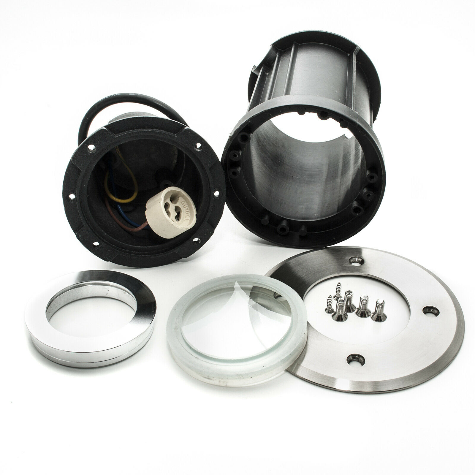 Il faretto ha la ghiera in acciaio inox ed un grado di protezione IP65 resistente alle intemperie e gli agenti atmosferici. Disponibile in 2 forme: rotondo o quadrato. Dotato di portalampada con attacco GU10 supporta faretti e lampadine con attacco GU10.