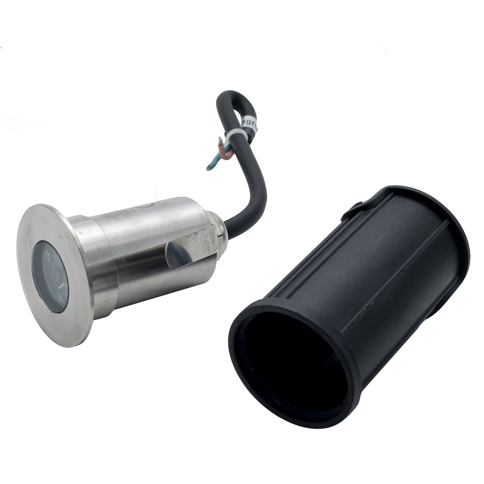 Faretto segna passi calpestabile a basso consumo energetico realizzato in alluminio con diffusore in vetro resistente alle intemperie, dotato di LED COB integrato da 1W a luce BLU, ideale per la decorazione esterna di giardini, per segnalare percorsi, viali, ad incasso nei marciapiedi per percorsi pedonali, ad incasso in gradini, scale, per illuminare alberi, piante, cespugli, a bordo di piscine.