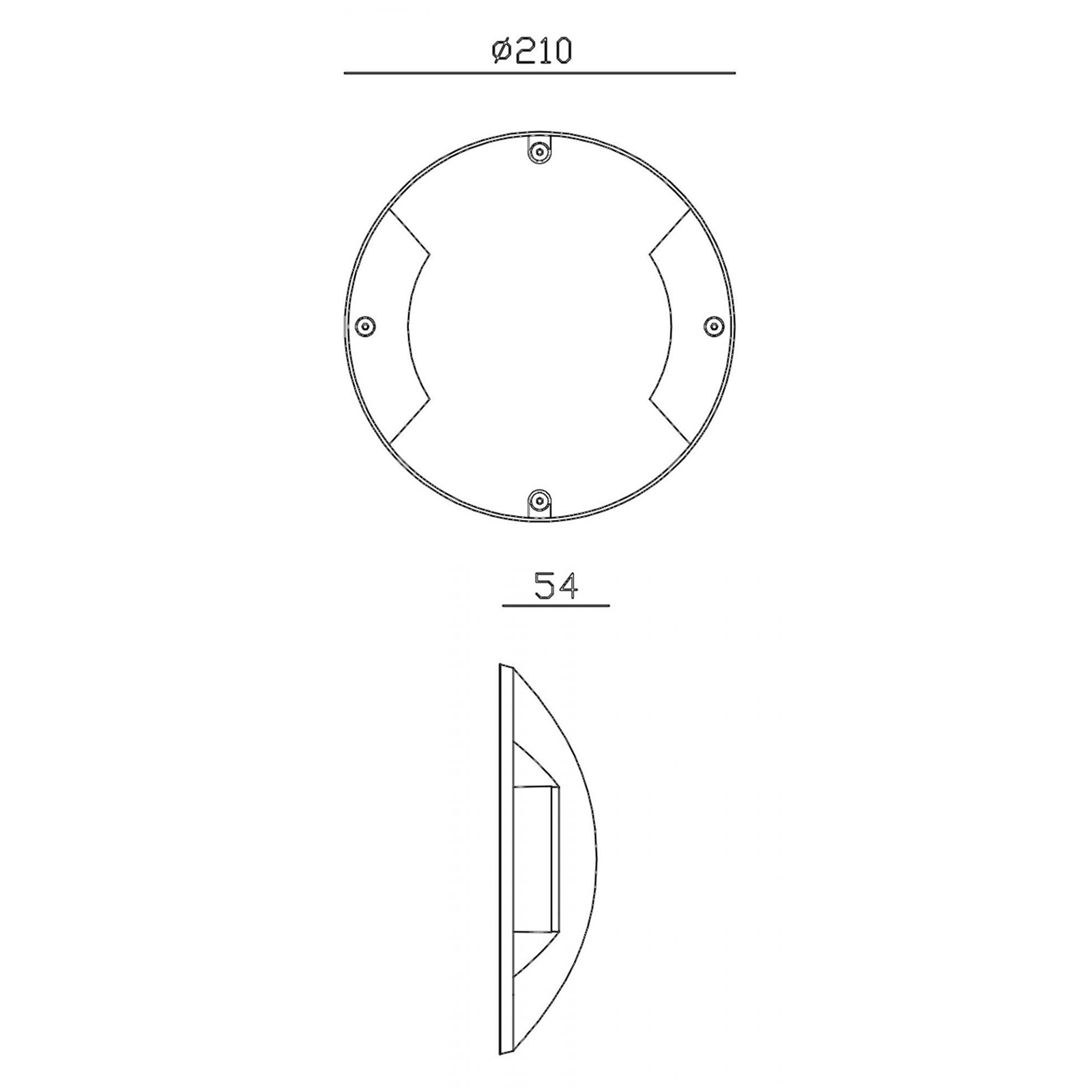 Semplice da installare da design slim questo faretto ha un'altezza di soli di soli 54mm con un diametro di 210mm - Ideale come luce decorativa per ambienti esterni. La qualità dei materiali ed il grado di protezione allunga nel tempo la durata di questo prodotto.