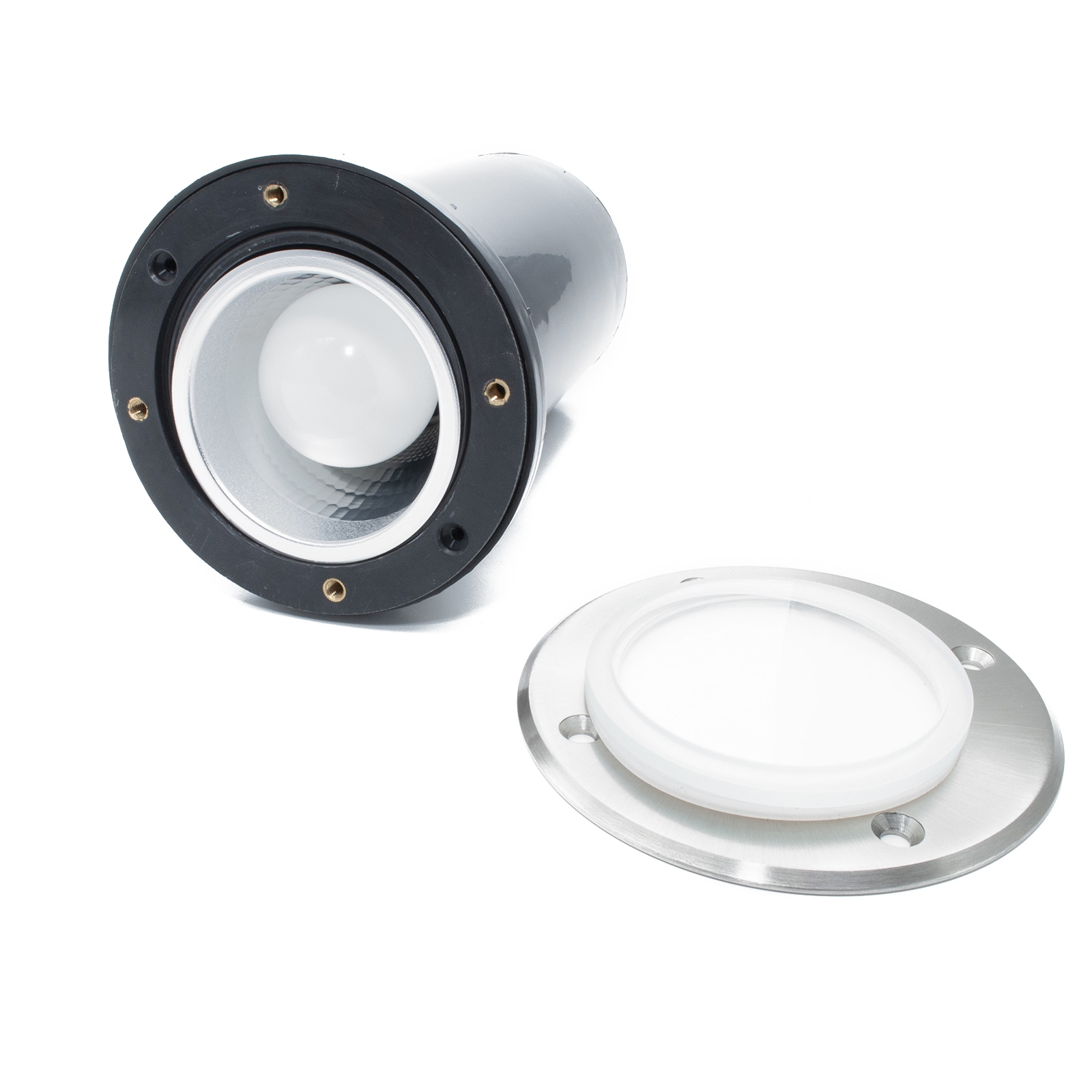 Faretto segnapassi con struttura in acciaio INOX e diffusore in vetro temperato calpestabile dotato controcassa in pvc per l'incasso nel terreno o cemento, ideale per l'illuminazione esterna di giardini, marciapiedi, all'esterno di abitazioni, cortili, per segnalare percorsi pedonali.
