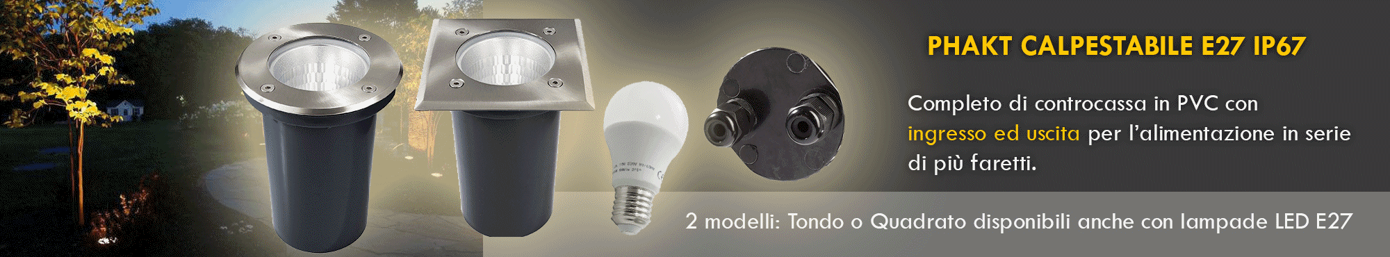 PHAKT Faretto LED calpestabile pendonabile IP67 lampada E27 10W segnapassi incasso luce giardino viale ingresso uscita in out 230V