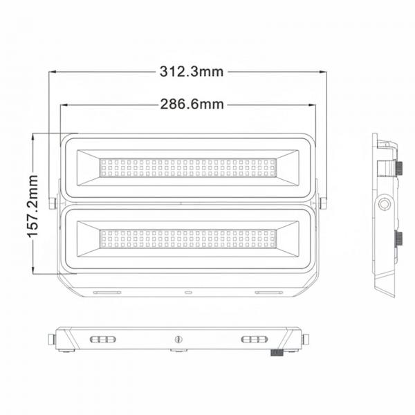 • Dimensione del faro completo di staffa: 312.3mm (larghezze) x 183.4mm (altezza) x 34.1mm (spessore)