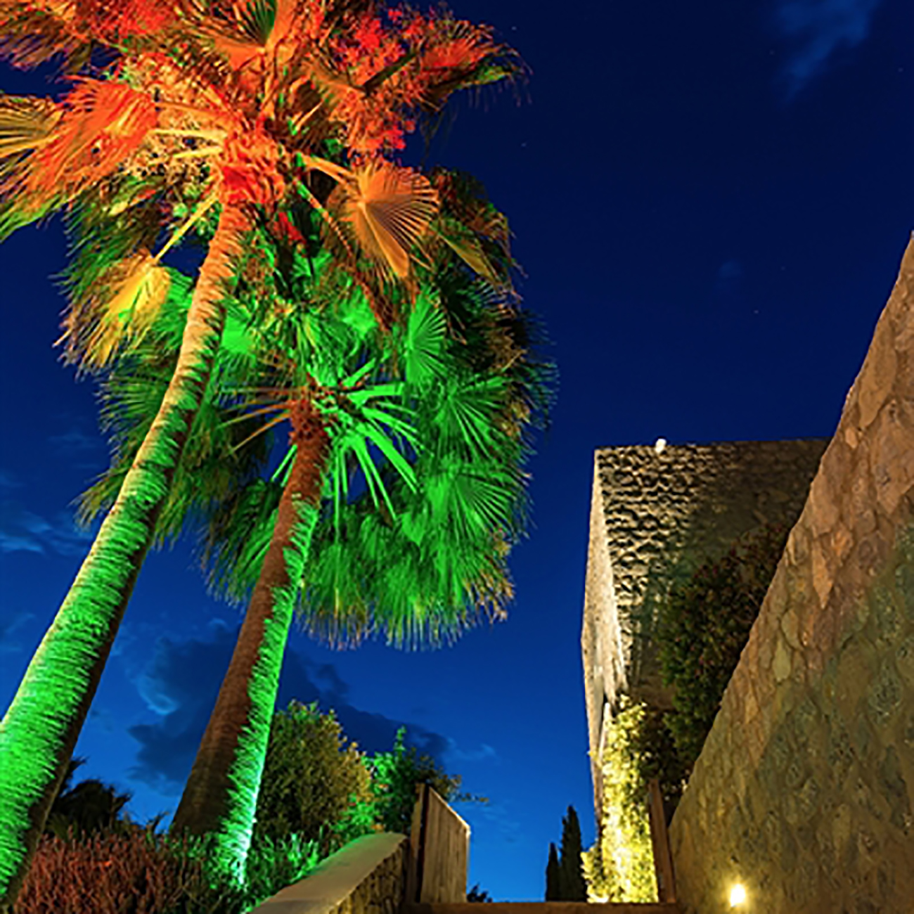 Dotato di LED RGB con variazioni cromatiche dinamiche, cioè in grado di emettere luce di tutti i colori ottenibili dalla miscelazione dei tre colori base Rosso, Verde e Blu; ampia scelta di sfumature di colore tramite pulsante. Sincronizzabile: è possibile comandare qualsiasi numero di faretti con un solo telecomando. Distanza max di funzionamento 20 metri.