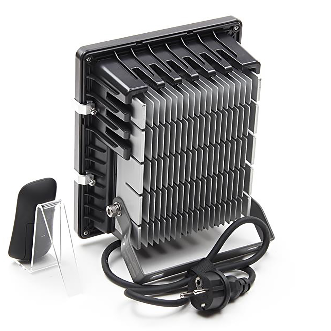 Il faretto è dimmerabile è possibile aumentare o abbassare l'intensità della luce. Viene fornito completo di telecomando RF incluso dotato di: Master dimmer professionale, memoria interna e speed controll. Ha memora interna che ricorda l'ultima impostazione. Realizzato in plastica ed alluminio pressofuso di colore grigio scuro. Questo faretto grazie alla staffa che lo rende orientabile è ideale per illuminare ambienti esterni (grado di protezione IP65) come giardini, grandi alberi, piante, facciate esterne, passaggi pedonali, illuminazione architetturale e insegne.