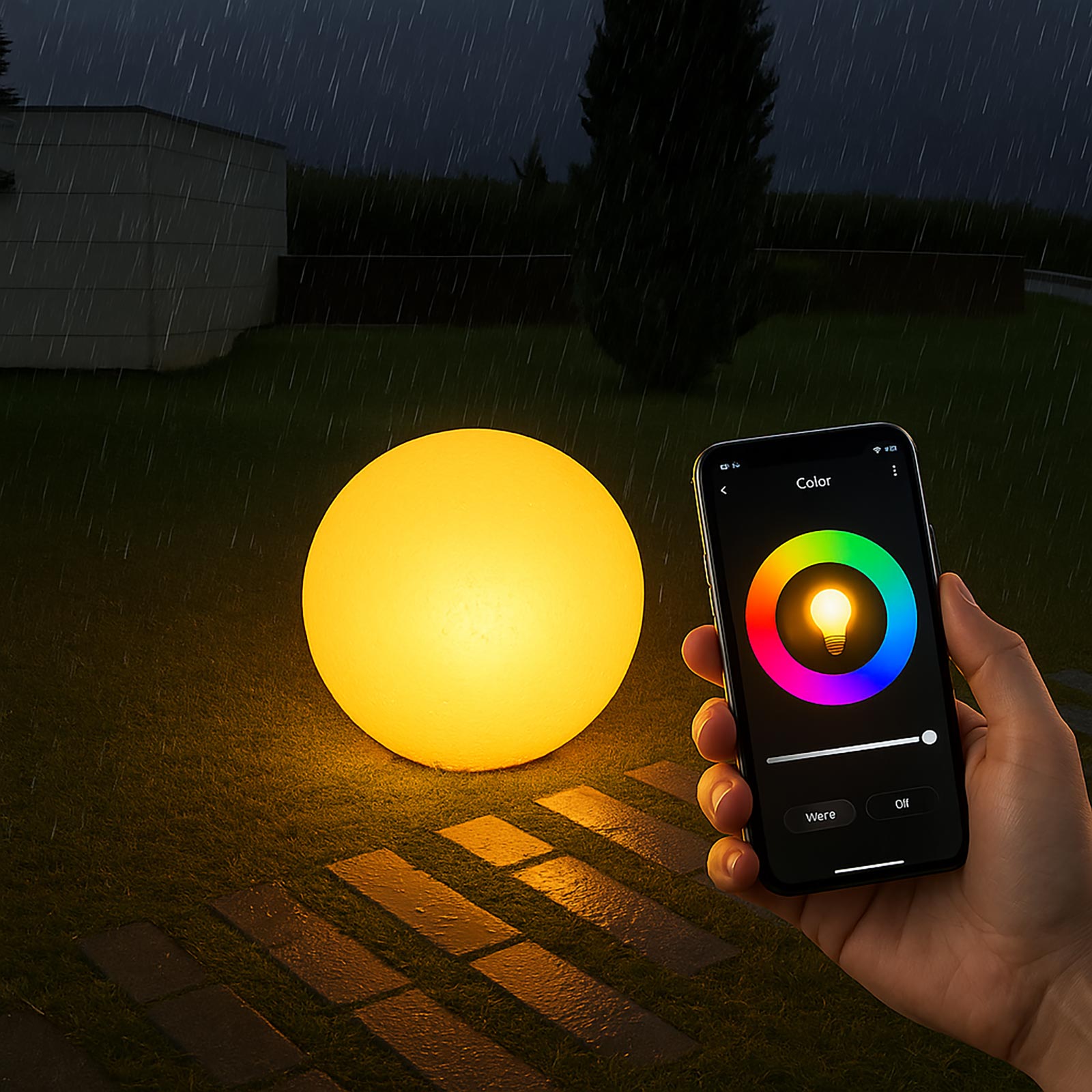 Resistente a raggi UV, caldo e freddo, la sfera mantiene inalterato l’aspetto nel tempo. È disponibile in tre diametri: 30 cm, 40 cm e 50 cm, per adattarsi a diverse esigenze di spazio e stile. Questa soluzione unisce estetica e funzionalità, offrendo una luce decorativa esterna versatile per ambienti residenziali o professionali.