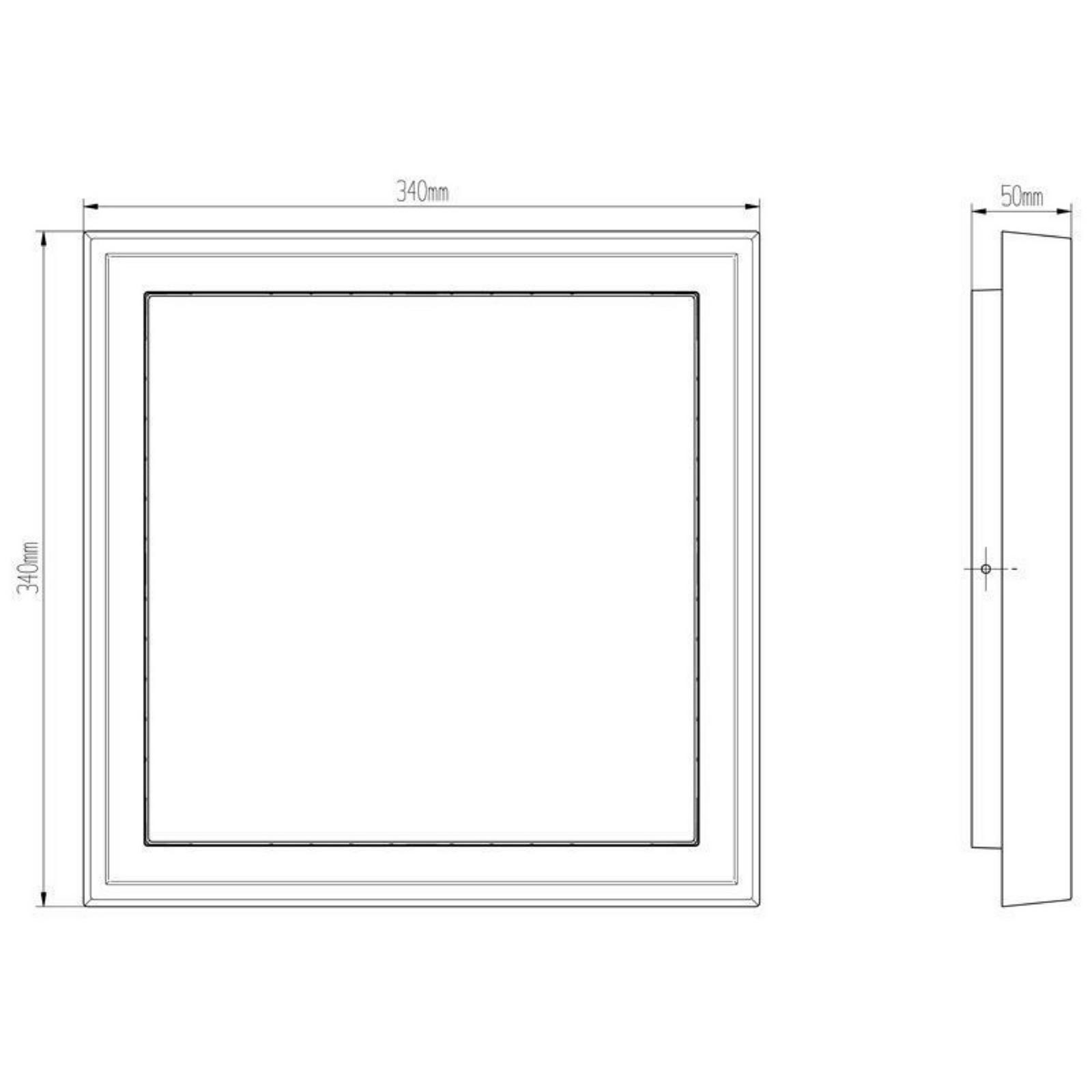 Dimensioni plafoniera tonda: Ø 50mm x 340mm - Dimensioni plafoniera quadrata: 50mm x 340mm x 350mm  - Dimensione base: 12mm x 270mm.
