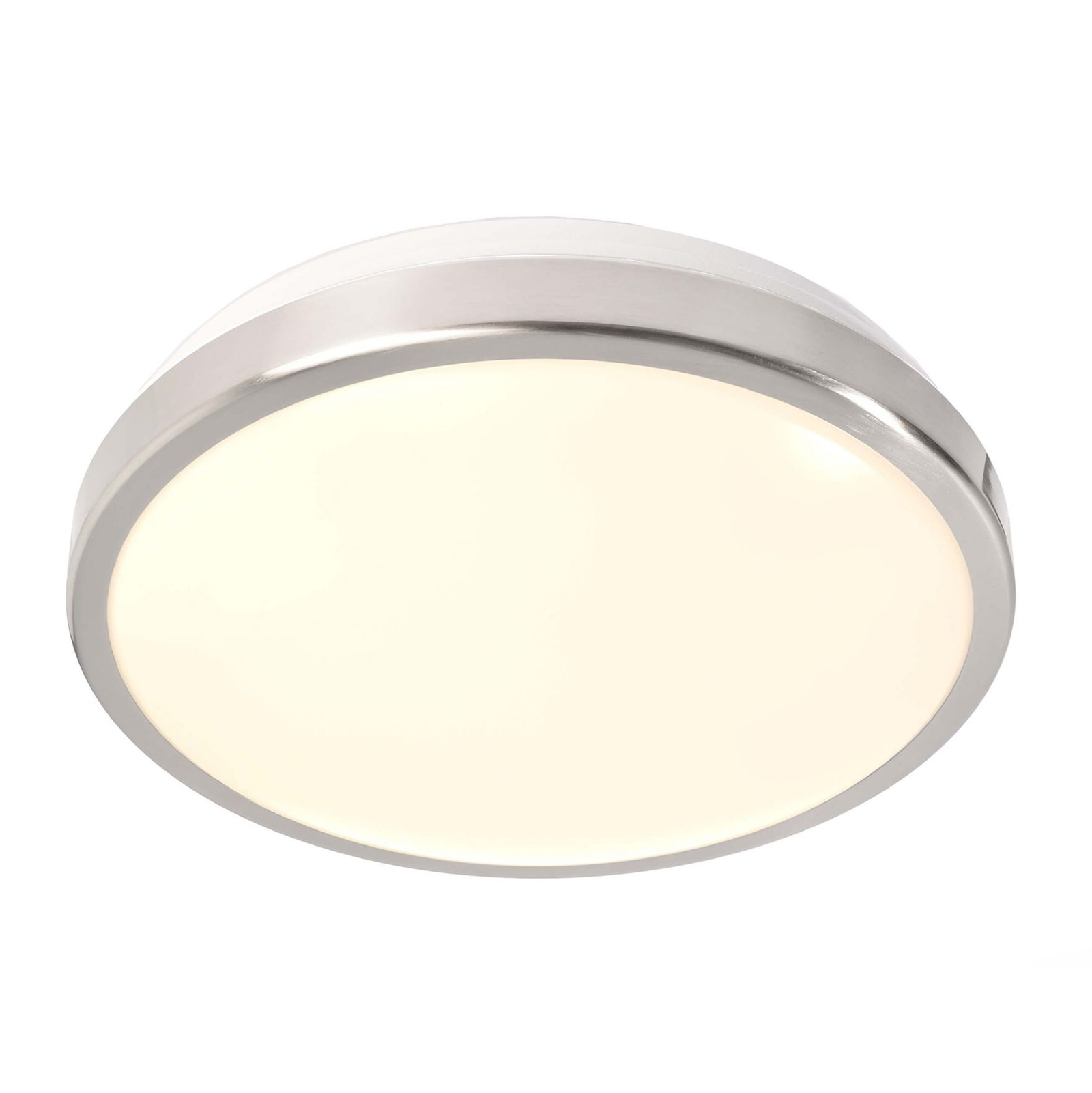 La plafoniera ha una potenza di 16W. Realizzata in plastica di forma rotonda con cornice argentata ha un grado di protezione IP54, questo la rende perfetta per resistere ad ogni condizione climatica. Inoltre è possibile installarla anche nel bagno e in ambienti con presenza di umidità.