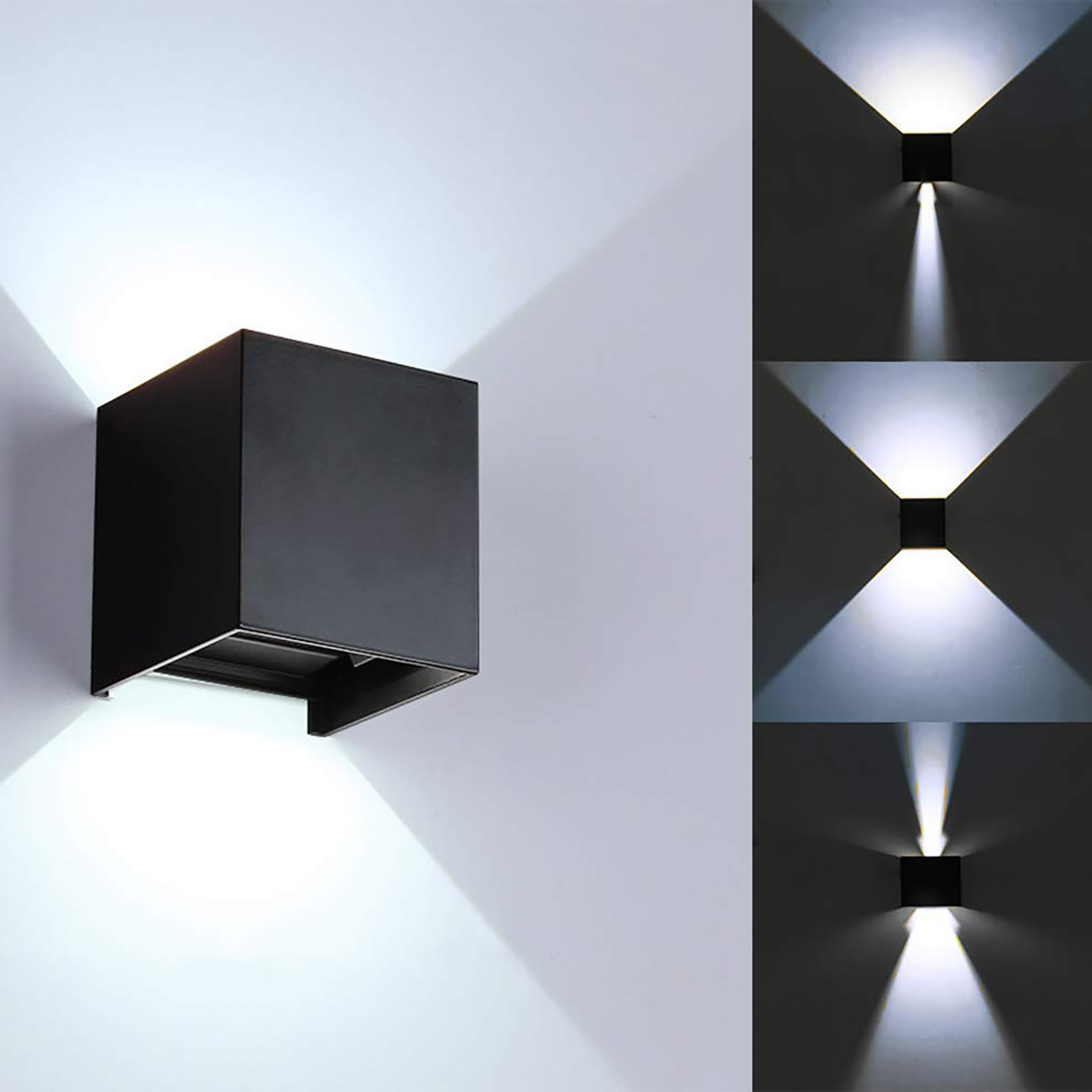 Applique per esterno lampada da parete forma di cubo dal design moderno realizzata in alluminio pressofuso con grado di protezione IP65 completamente impermeabile adatto per resistere agli agenti atmosferici e alle intemperie.