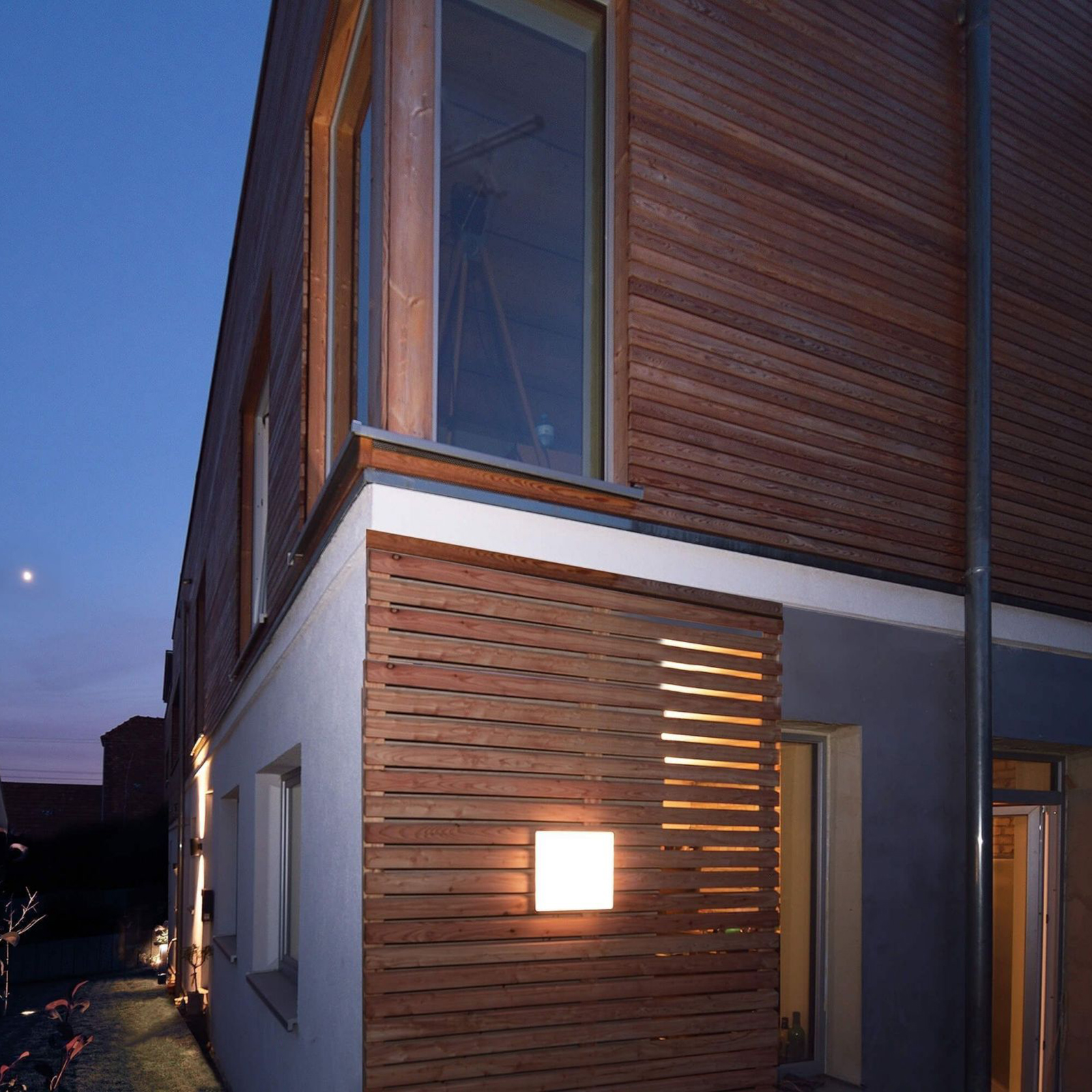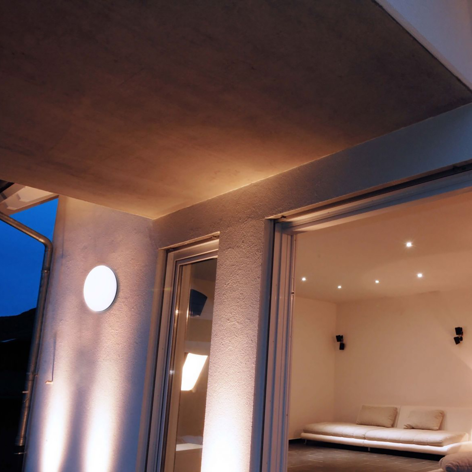 Semplice da installare può essere fissata a parete o soffitto, la lampada ha un grado di protezione IP54 adatto per uso esterno resistente alle intemperie e gli agenti atmosferici.