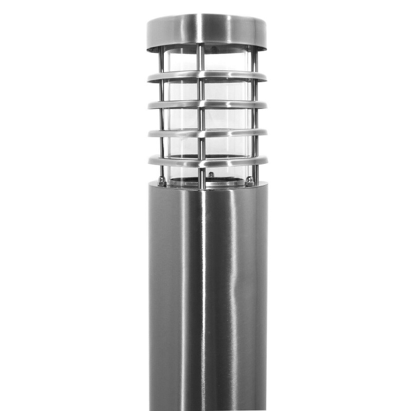 Lampione in acciaio INOX verniciato a polveri epossidiche con attacco E27 ideale per l'illuminazione di spazi esterni come giardini, percorsi pedonali, vialetti, parchi, all'esterno di centri commerciali. Si alimenta a 230V ed ha un grado di protezione IP44 resistente alle intemperie e gli agenti atomosferici.