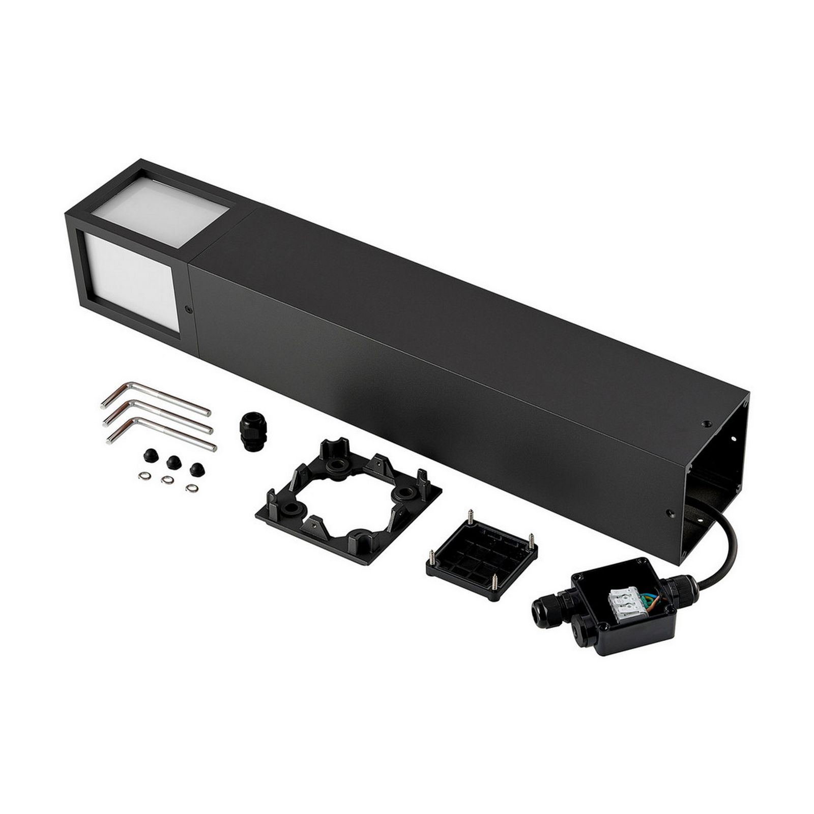 La struttura di questa linea di lampioni FACADO è realizzata in alluminio pressofuso ad alta pressione di alta qualità ed è disponibile in grigio scuro di forma quadrata.