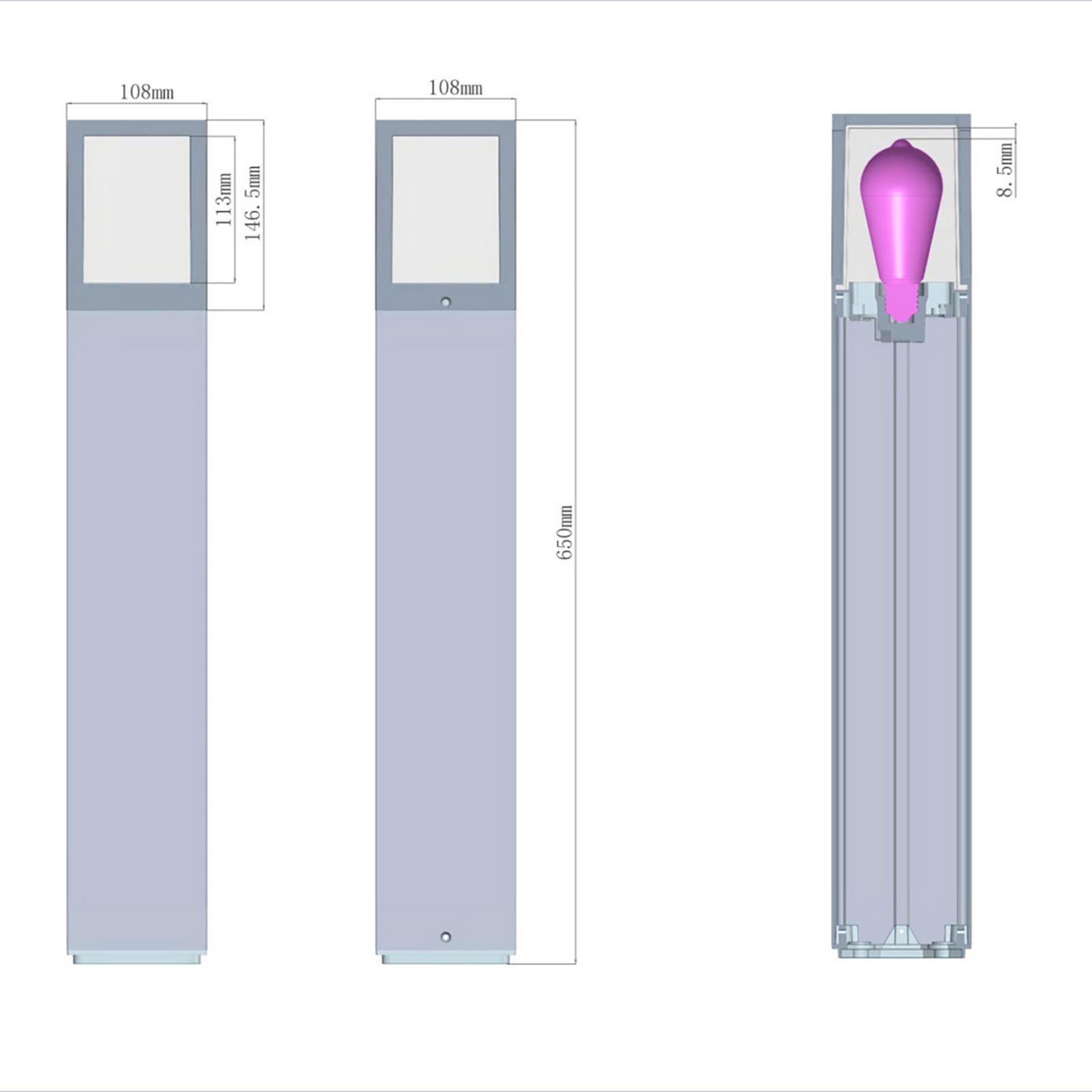 Ha una dimensione di 650 mm e presenta un attacco E27 con la possibilità di sostituire la lampada in caso di rottura. La testa della lampada di nuova concezione fornisce un'illuminazione notevolmente migliorata.