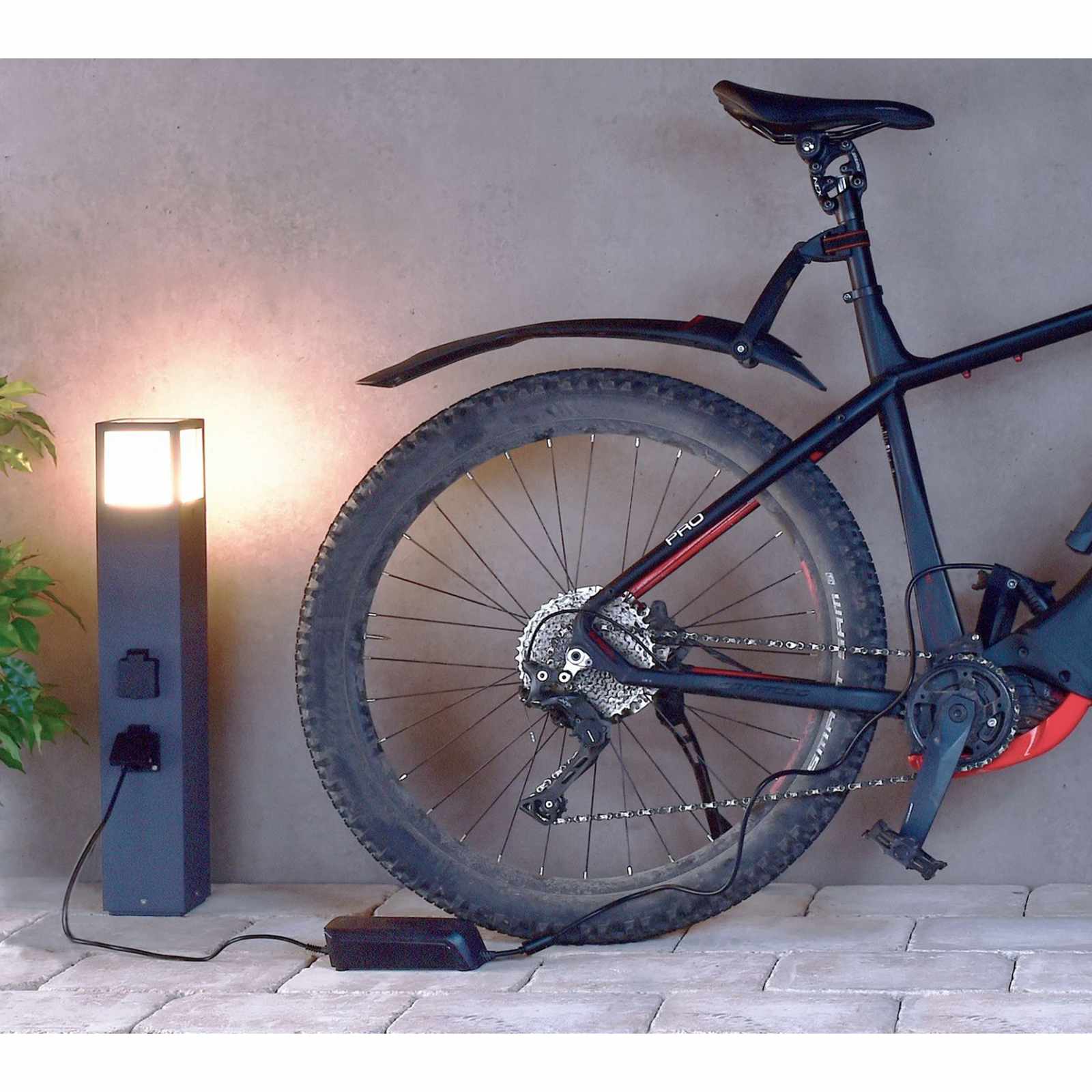 Questo lampione è dotato di doppia presa schukosupporta lampade LED con attacco E27 con potenza max. 20W - La lampada intercambiabile consente una facile sostituzione in caso di rottura a differenza di prodotti con led integrati.