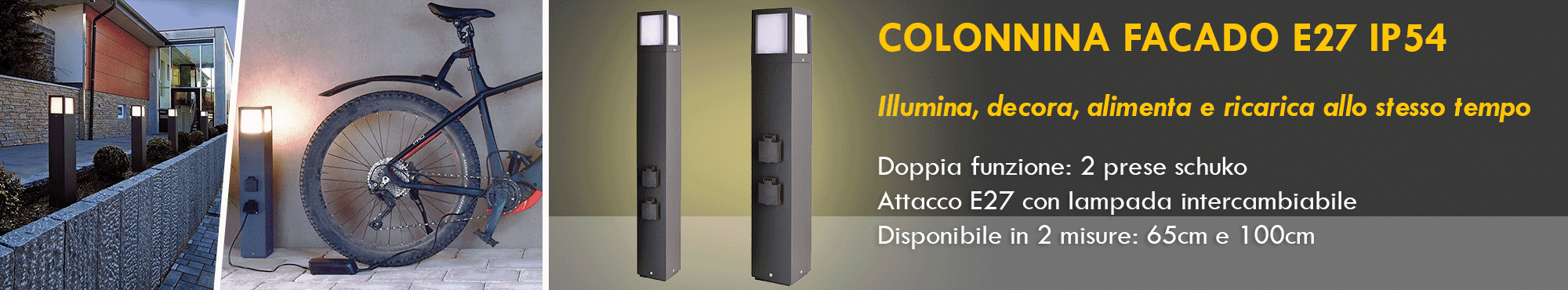 Questo lampione è dotato di doppia presa schuko, supporta lampade LED con attacco E27 con potenza max. 20W - La lampada intercambiabile consente una facile sostituzione in caso di rottura a differenza di prodotti con led integrati.