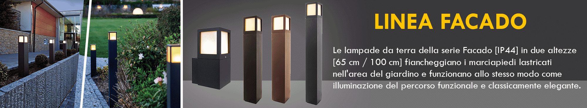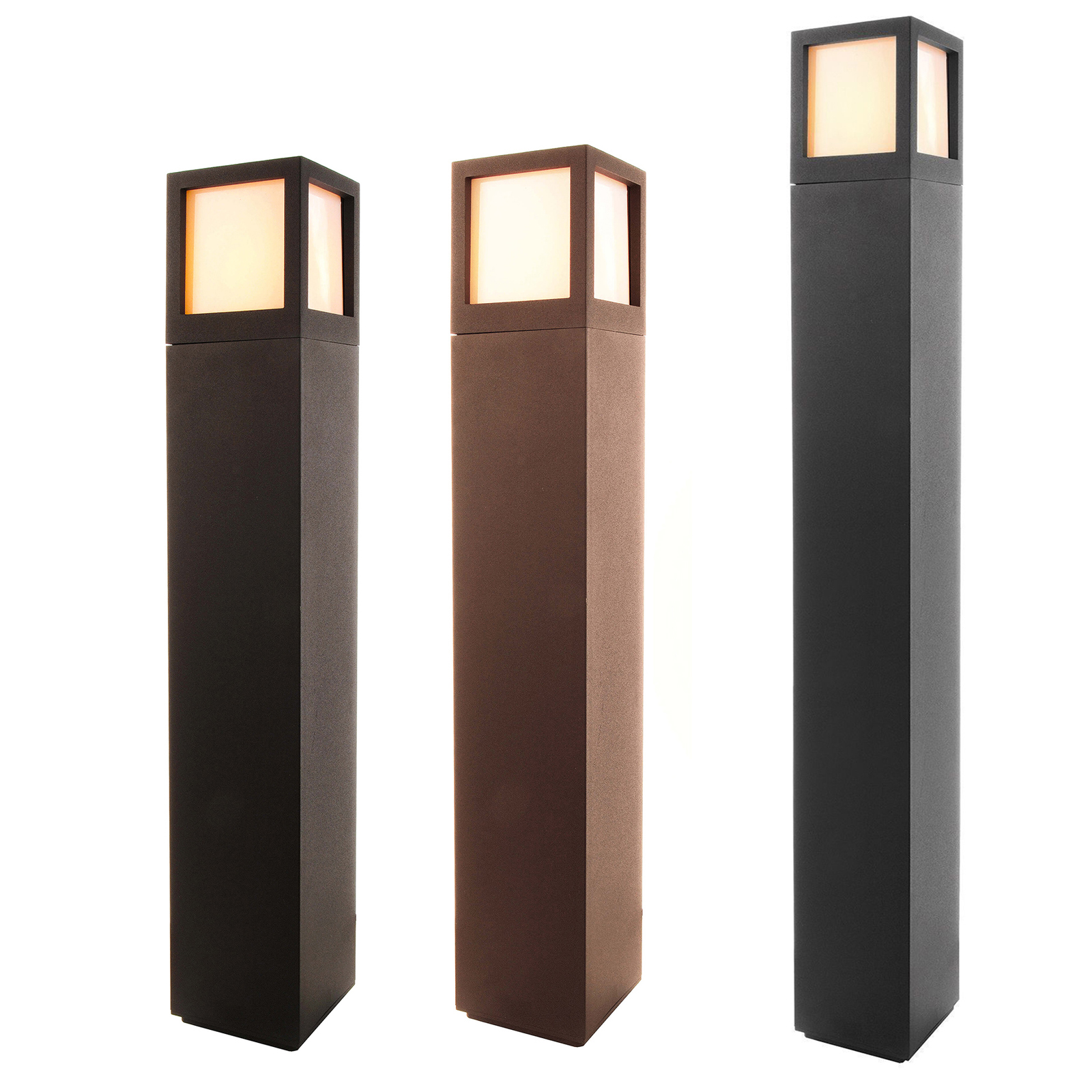 FACADO Lampione moderno di forma quadrata per uso esterno realizzato in alluminio pressofuso disponibile in 2 colori antracite e marrone dotato di diffusore in policarbonato opaco con portalampada attacco E27 ideale per l'illuminazione esterna di giardini, spazi verdi, parchi, all'esterno di abitazioni, per segnalare percorsi pedonali, viali, all'esterno di ville, cortili.