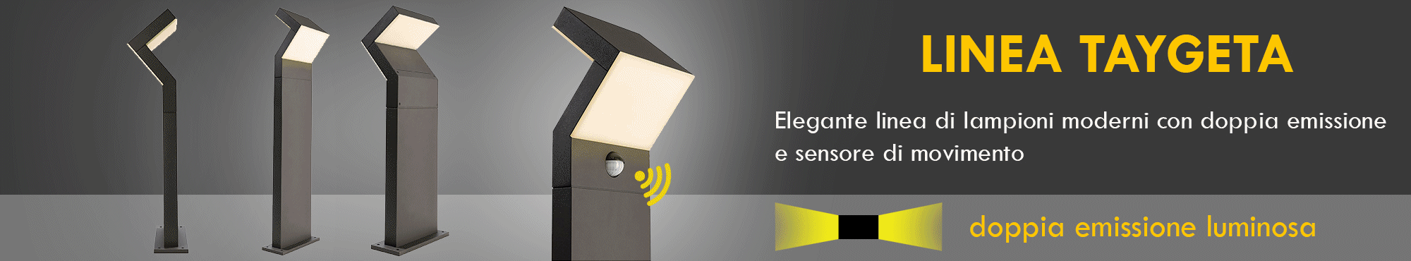Linea TAYGETA Lampione moderno dal design squadrato dotato di LED integrati con potenza 18W ideale per l'illuminazione esterna di giardini, viali, cortili, aree verdi, parchi, sentieri, all'esterno di abitazioni, ville, per dare un tocco di eleganza e particolarità a spazi esterni. Realizzato in alluminio pressofuso di altissima qualità di colore antracite, ha i diffusori in poicarbonato anabbagliante. Questo lampione ha la particolarità di emettere una doppia emissione sia avanti che indietro (doppio diffusore)