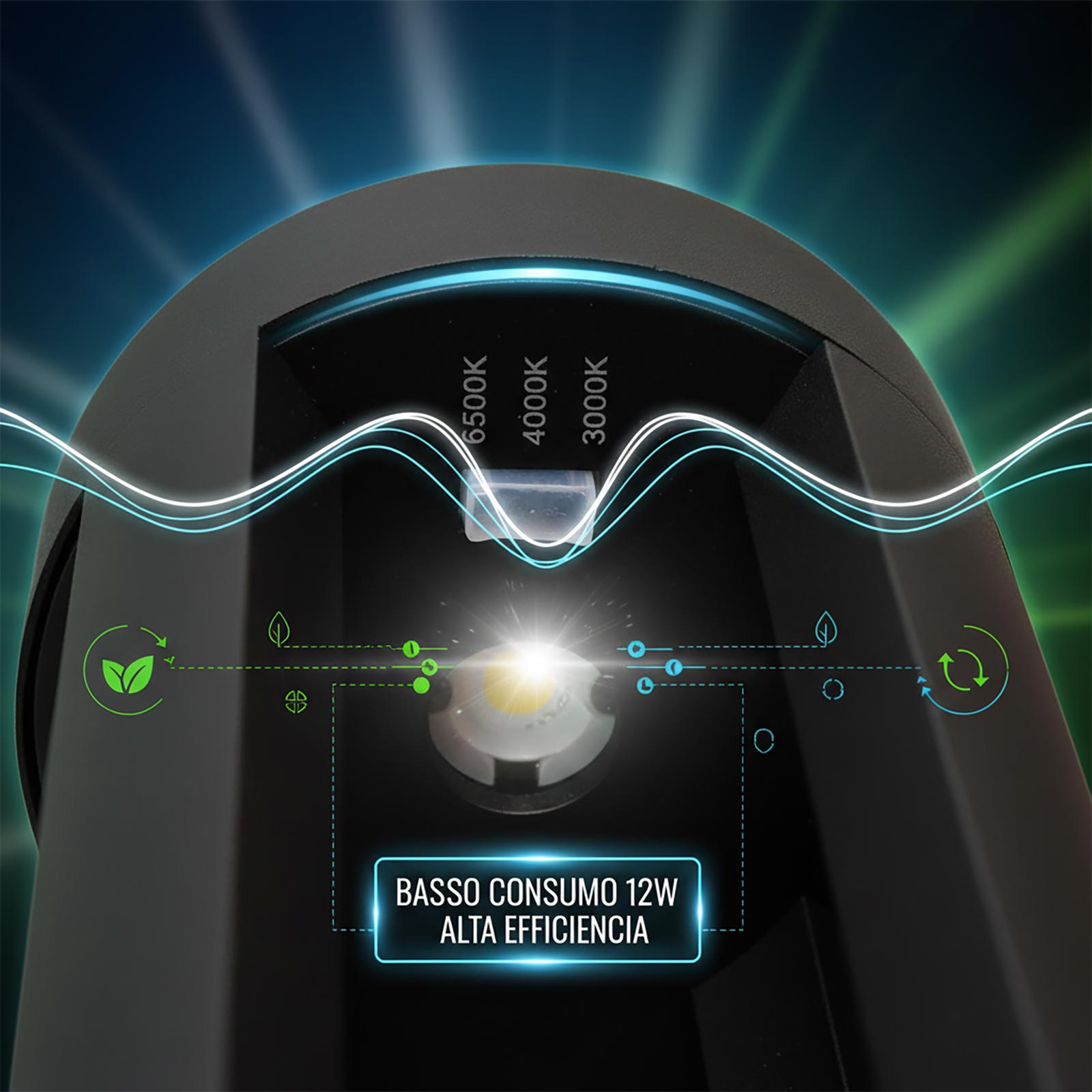 Efficienza Energetica: Con soli 12W di consumo, genera un’intensità luminosa di 600 lumen, garantendo un forte risparmio sulla bolletta elettrica.