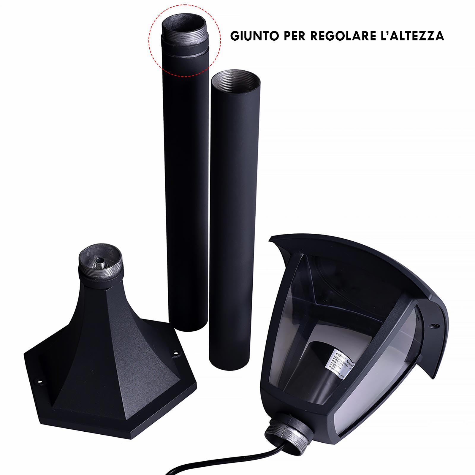 Lampione moderno da giardino E27 lampioncino impermeabile luce per viale cortile sentiero altezza regolabile 86cm