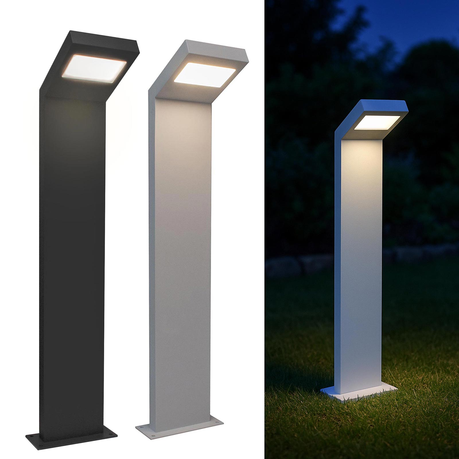 Il design moderno e lineare, disponibile in grigio scuro o bianco, rende il lampione non solo funzionale, ma anche un elemento decorativo per spazi residenziali.