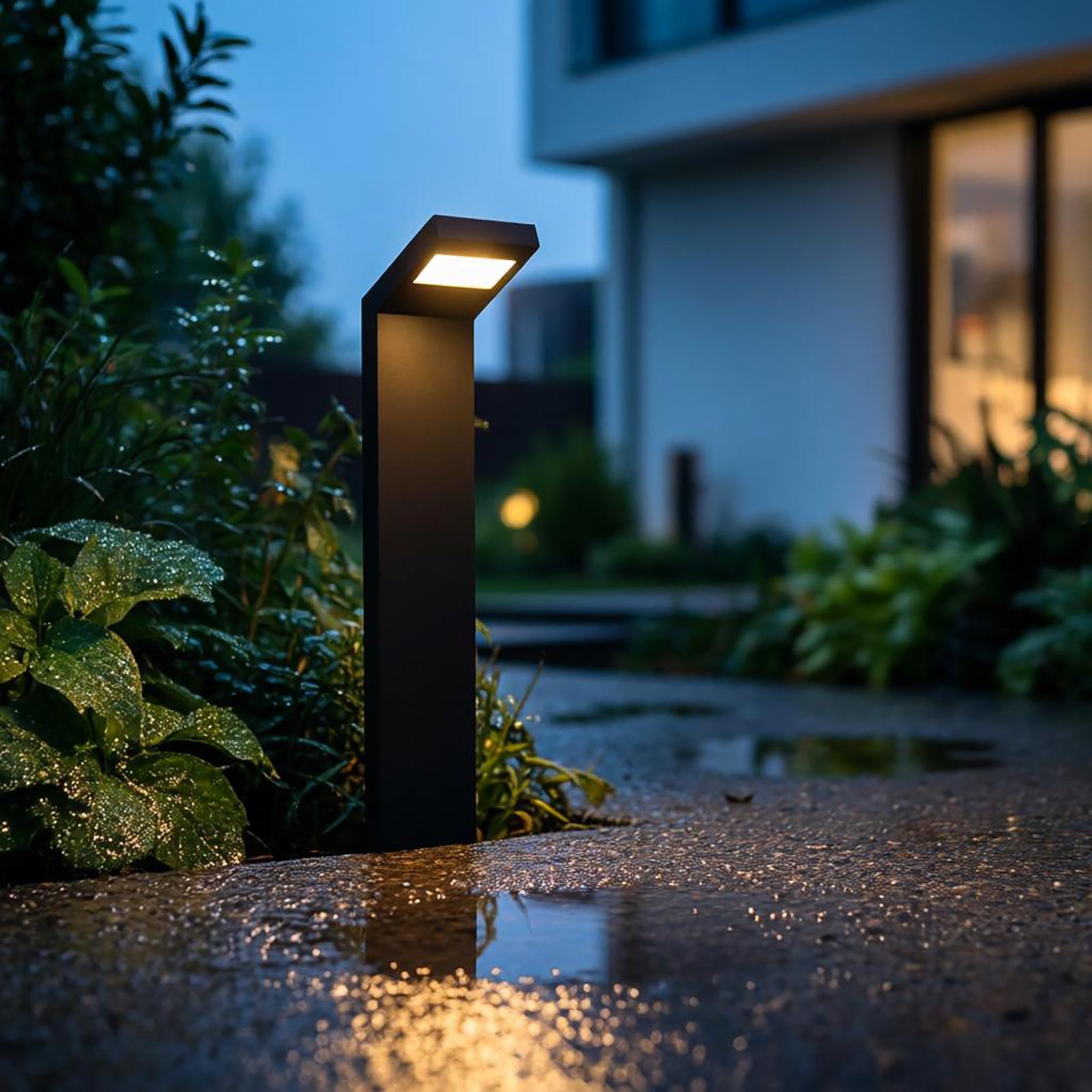 Il design moderno e lineare, disponibile in grigio scuro o bianco, rende il lampione non solo funzionale, ma anche un elemento decorativo per spazi residenziali.