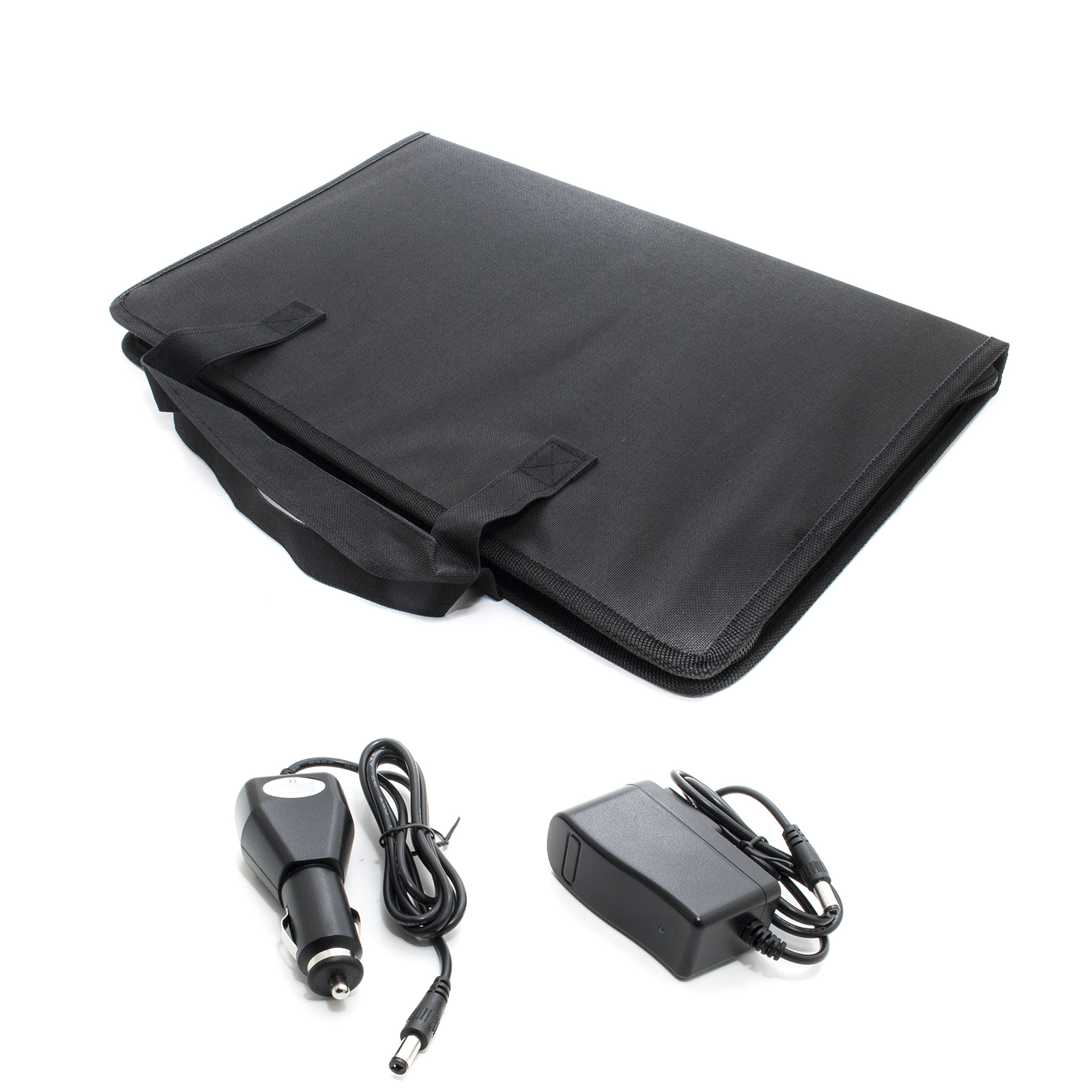 Nella confezione è inclusa una borsa per il trasporto, il caricatore da auto ed il caricatore a tensione di rete.