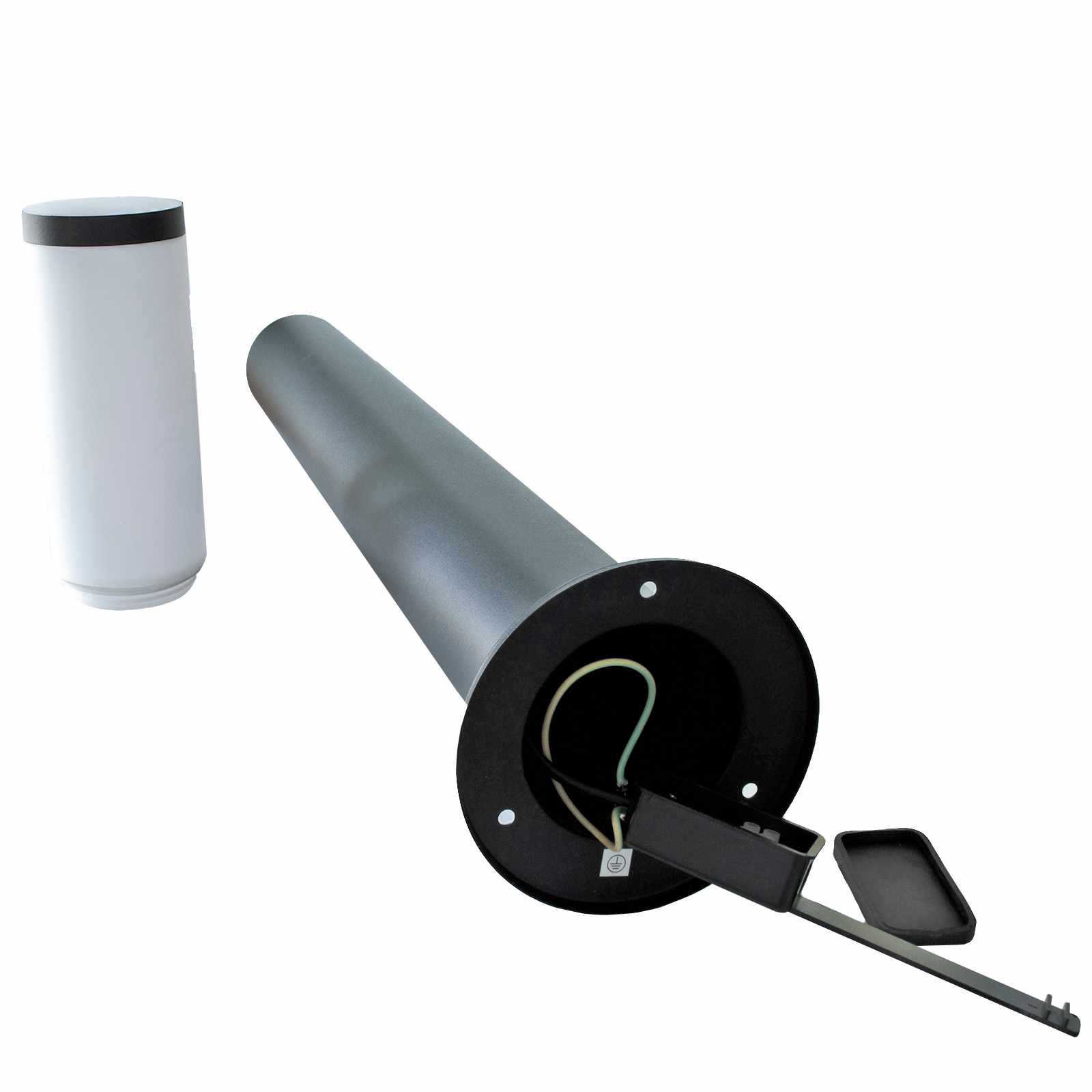 Design minimal ma grande funzionalità dotato di diffusore in policarbonato opaco con un emissione luminosa diffusa senza abbagliare la vista. Completo di base per il fissaggio su pavimentazione. Disponibile in 2 misure da 500mm e da 800mm - Dimensioni del lampione: 500mm x Ø 76mm Ø 110mm. - Dimensioni del lampione: 800mm x Ø 76mm Ø 110mm.