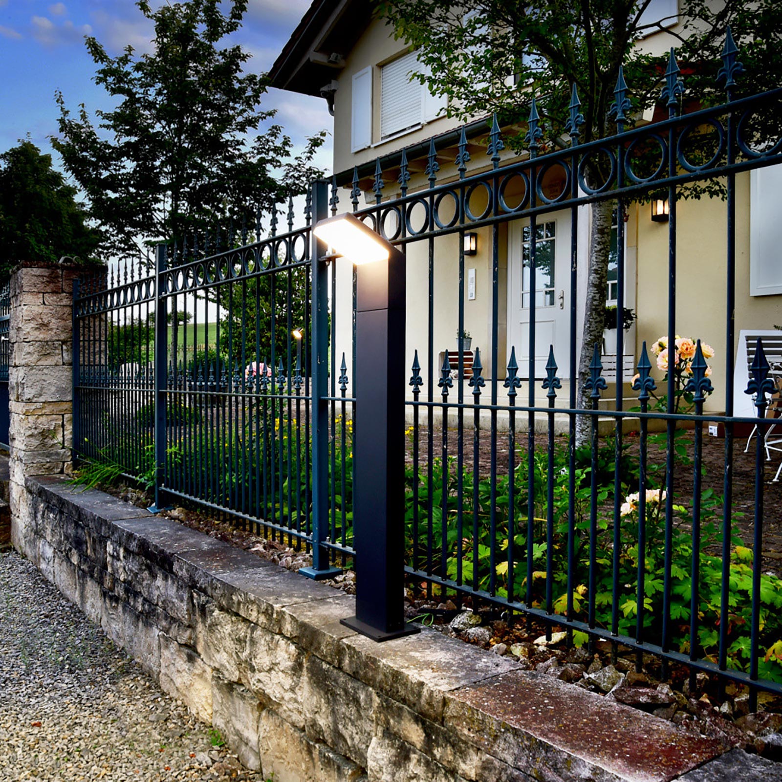 Linea TUCANAE Lampione LED da design moderno realizzato in alluminio pressofuso di alta qualità con led SMD integrati potenza 16W, ideale per l'illuminazione di percorsi pedonali, vialetti, aree verdi private, illuminazione giardino, all'esterno di cancelli, parcheggii, garage. Il lampione è di colore antracite e grazie al suo particolare design diventa anche un complemento d'arredo per illuminare ed arredare allo stesso tempo gli spazi esterni. Grado di protezione IP54 resistente alle intemperie e gli agenti atmosferici.