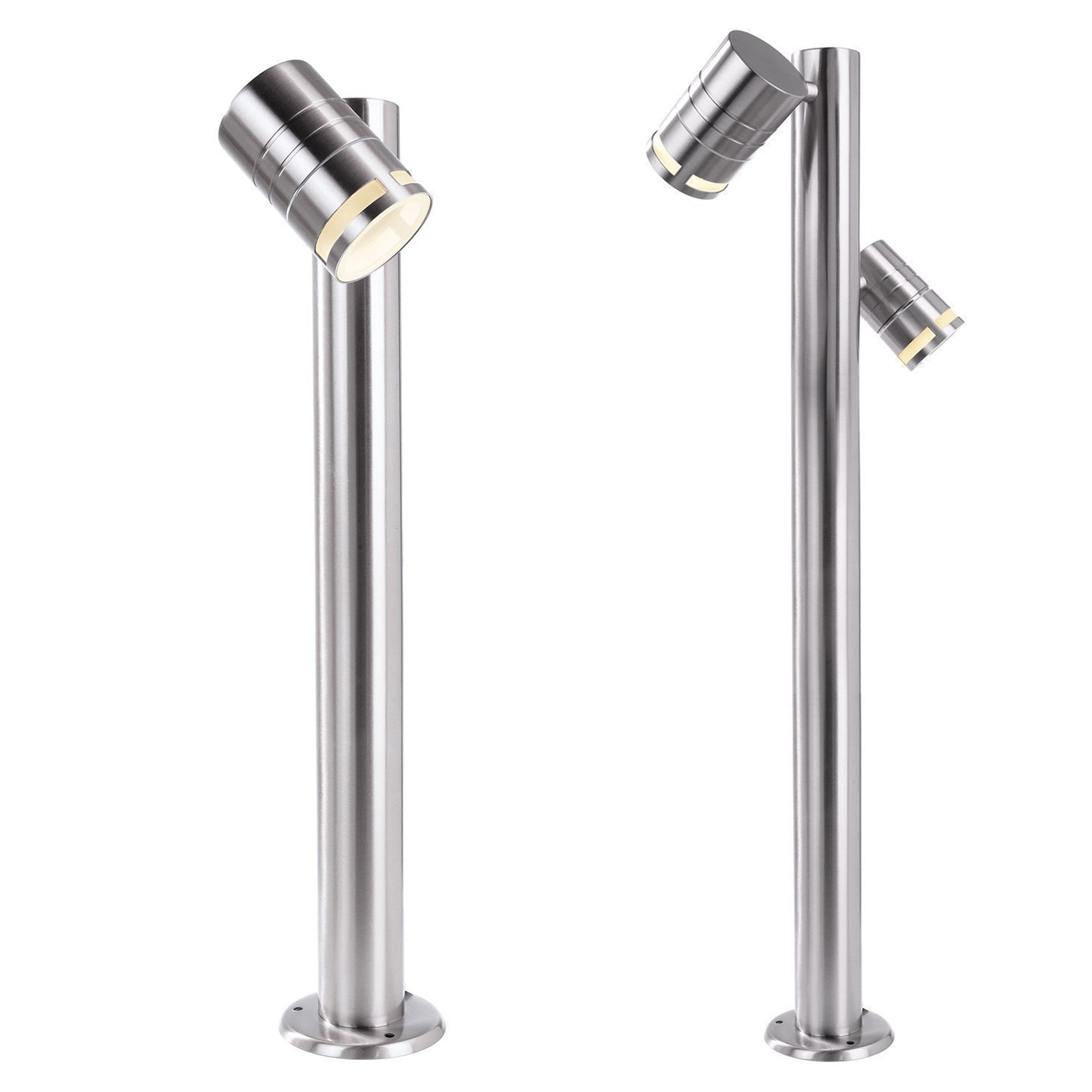 Linea ZILLY Lampione metallizzato in acciaio inox disponibile in 2 versioni: con singolo e doppio diffusore orientabile ideale per l'illuminazione di spazi esterni come giardini, viali, aree verdi, parchi, all'esterno di abitazioni o negozi, Dotato di portalampada con attacco GU10 supporta lampade e faretti con attacco GU10 con possibilità di regolare l'angolazione della luce orientando il diffusore secondo le proprie esigenze.