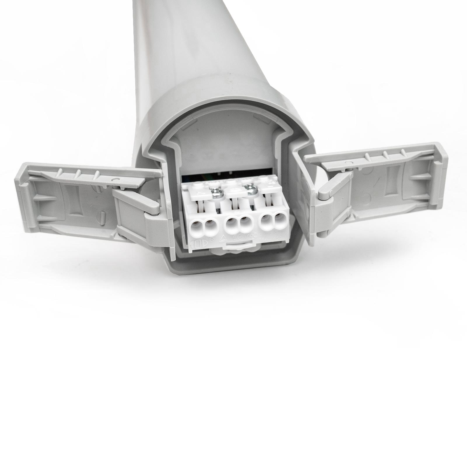 Cablaggio passante: grazie a questa particolarità è possibile collegare in serie più plafoniere rendendo così più facile l'installazione ed espandendo l'illuminazione secondo la zona o l'ambiente da illuminare. Inoltre grazie al pratico sistema di sgancio diventa ancora più faccile collegare i fili ai morsetti.