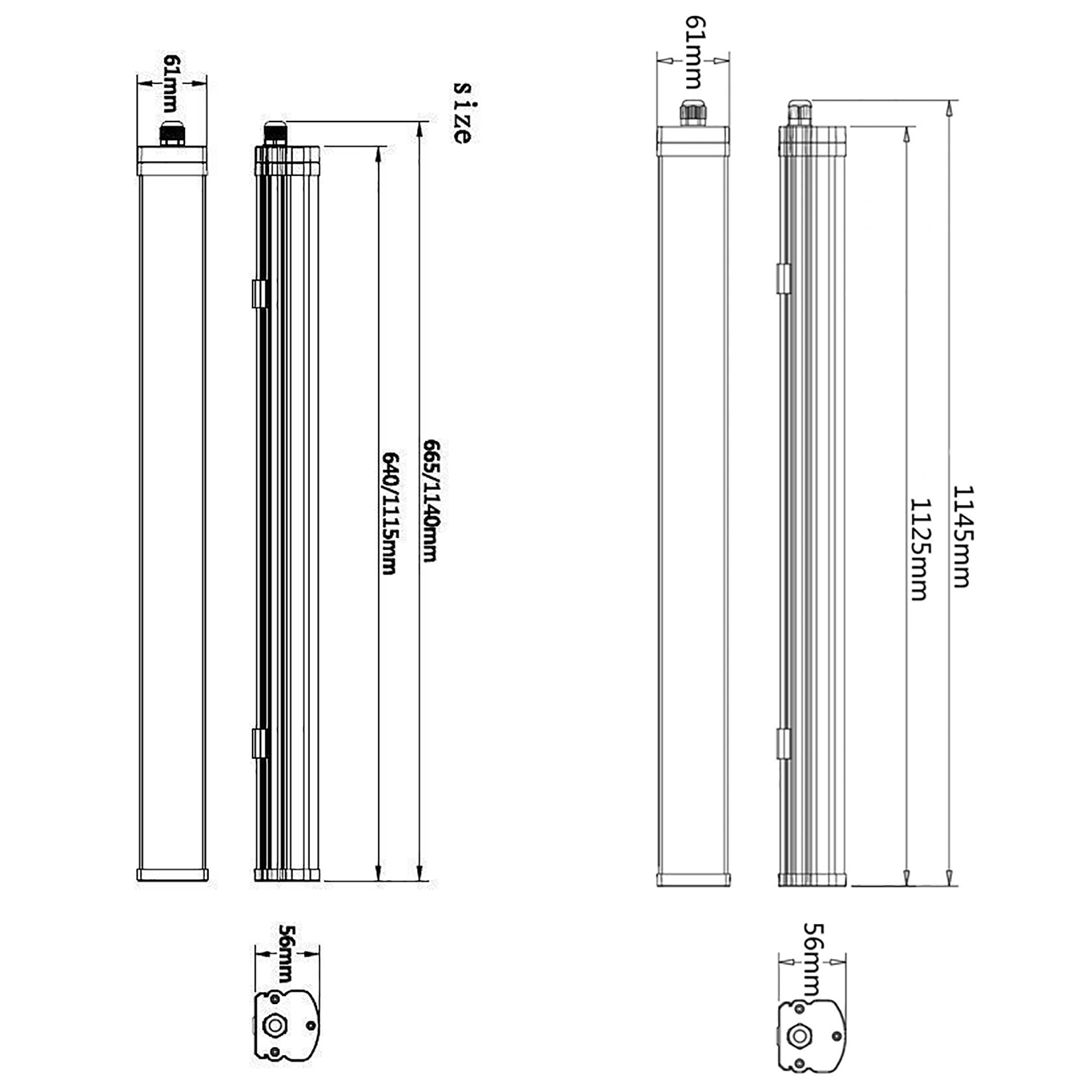 Disponibile in 2 lunghezze: 665mm, 1145mm - 2 potenze disponibili: 18W = 1900 lumen - 240W = 2500 lumen