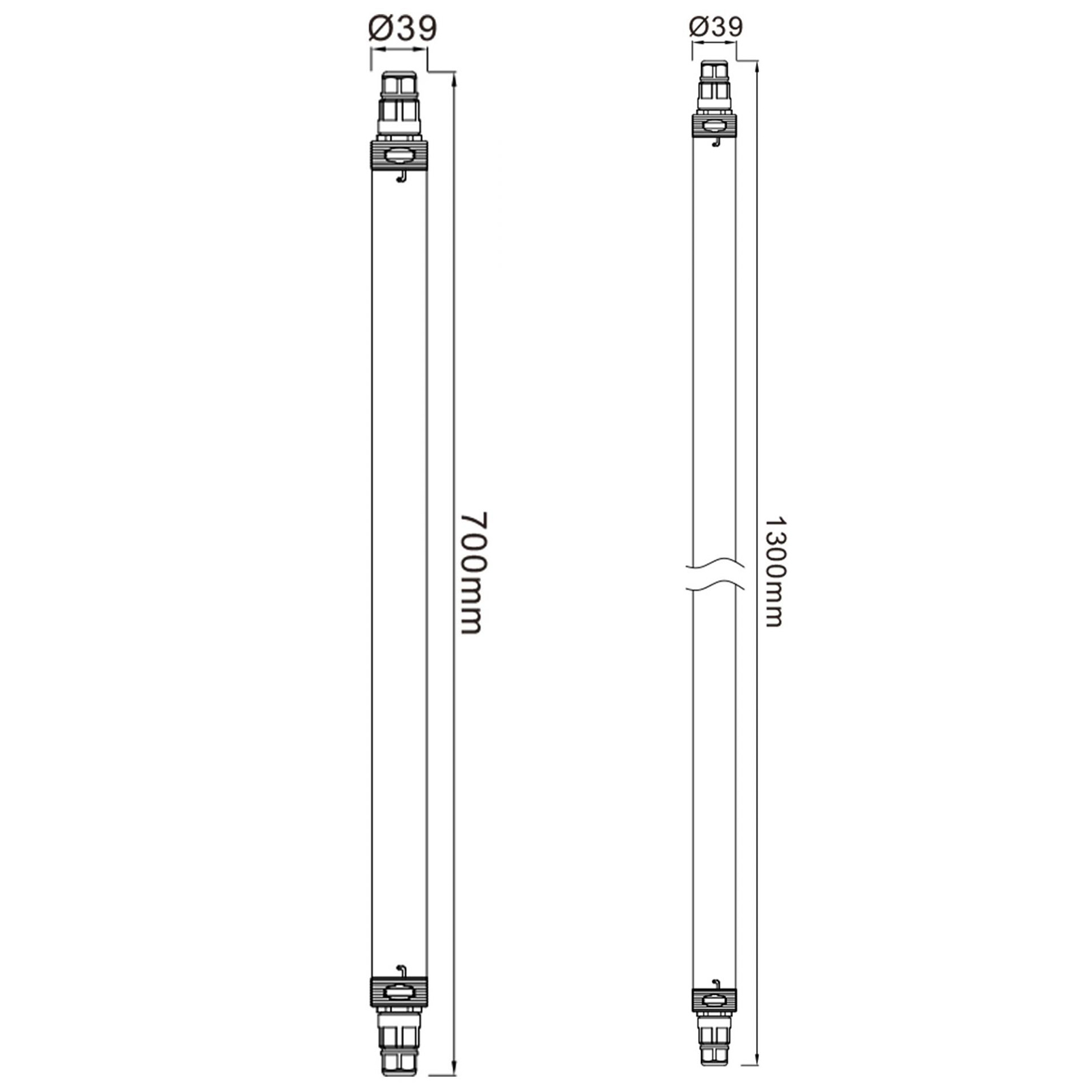 Nella confezione sono incluse le clips per il montaggio. Dimensioni plafoniere: Ø 39mm x 700mm - Ø 39mm x 1300mm