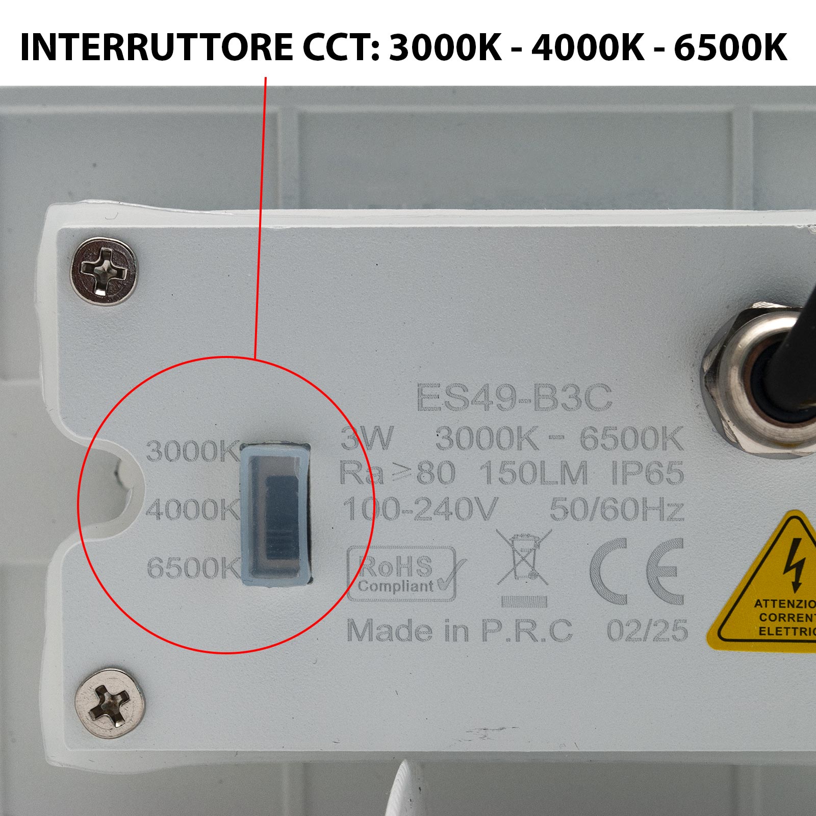 Il segnapasso a led ha una resa equivalente a 15W delle vecchie lampade. Si alimenta a 230V - Facile da installare e viene fornito di viti per il montaggio. L'interruttore CCT è protetto da una guaina in silicone, questo consente maggiore durata nel tempo, evitando infiltrazione d'acqua.