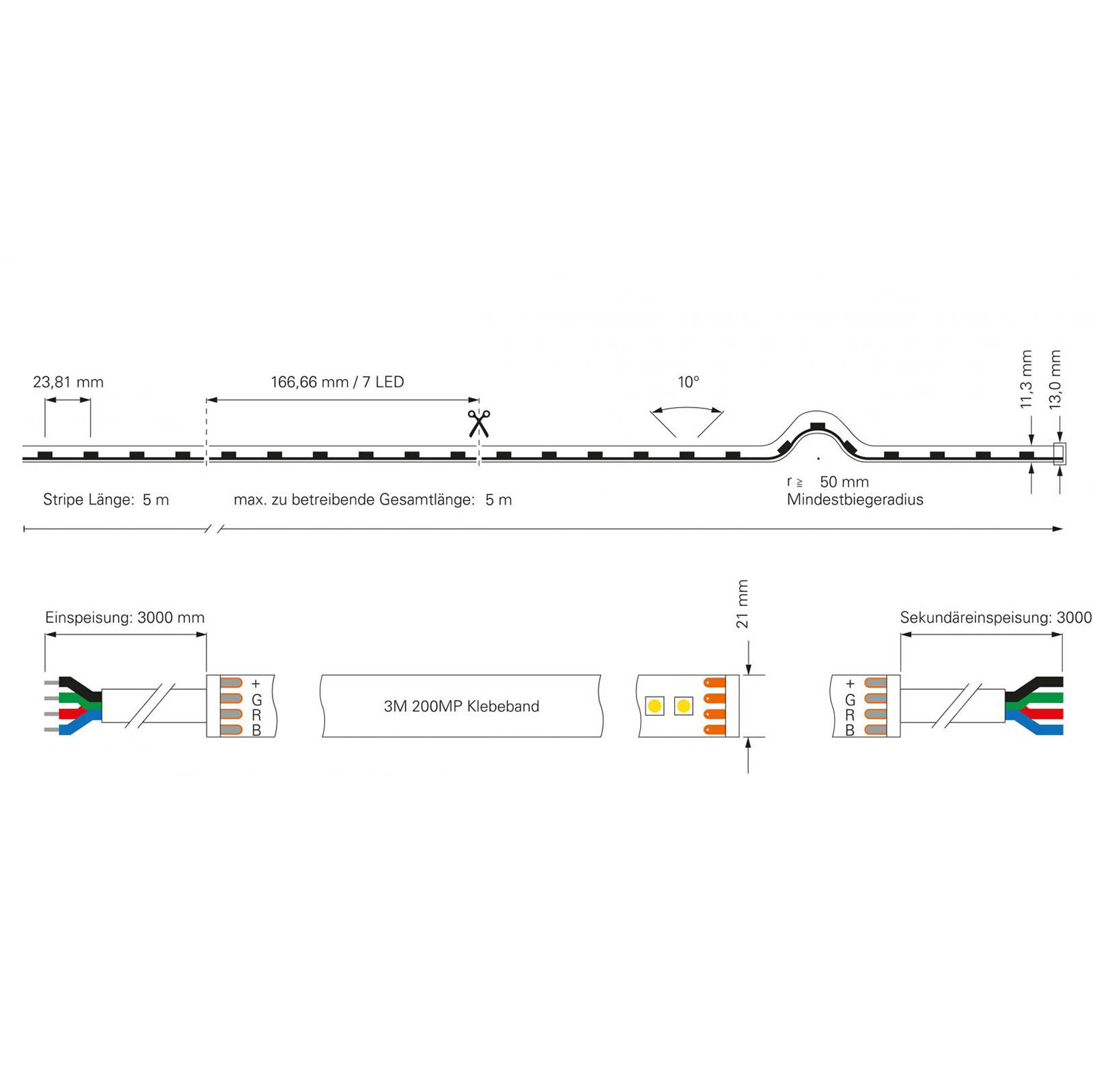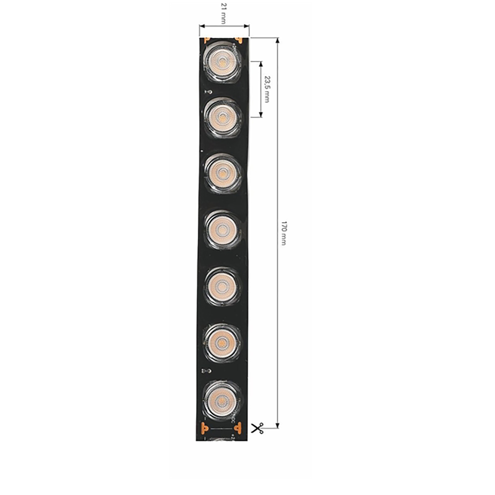 Inoltre è possibile tagliare la striscia ogni 7 LED secondo le proprie esigenze.