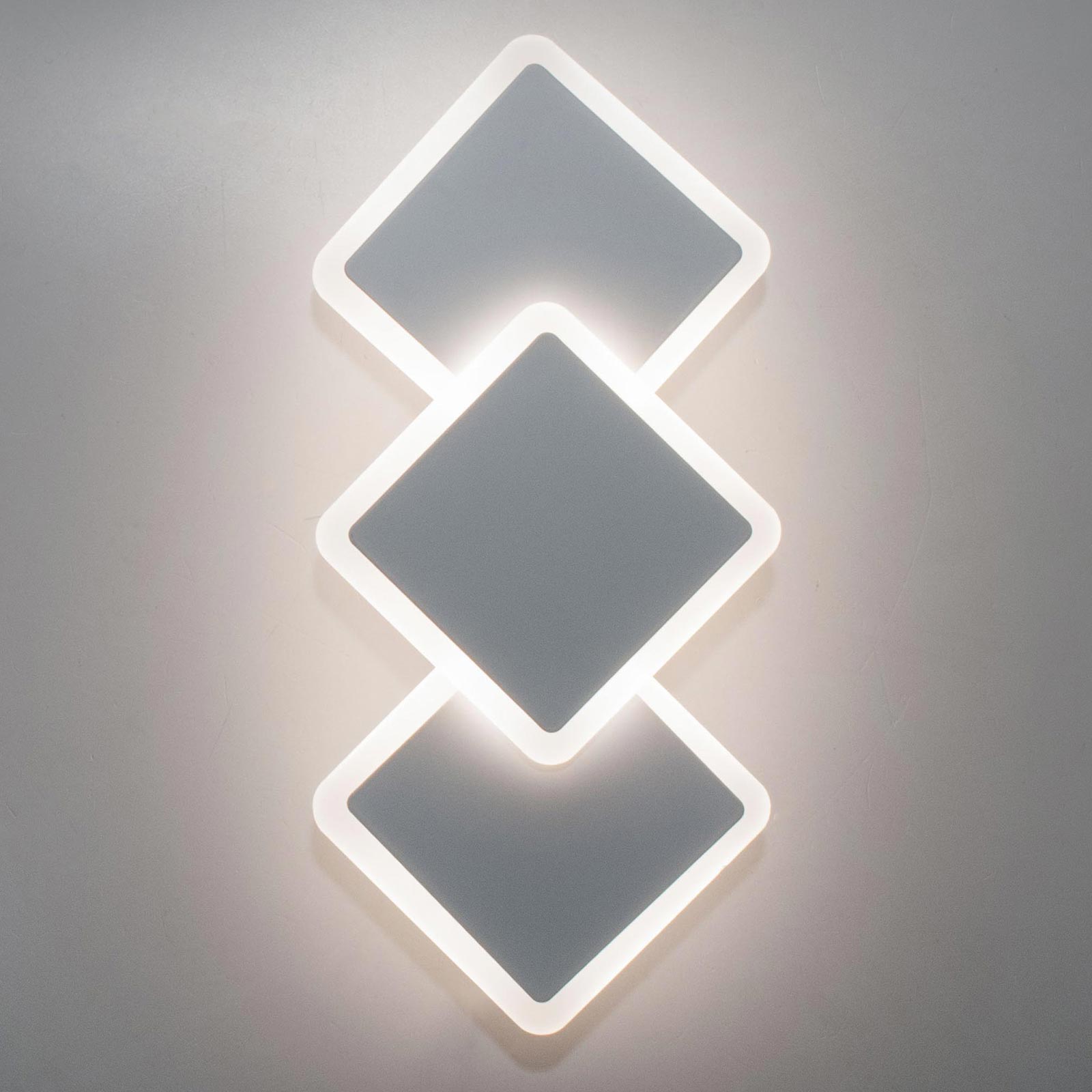 Applique moderno da parete con design decorativo a 3 rombi, ideale per illuminare ambienti interni come soggiorno, camera da letto, cucina, ingresso, ufficio. La struttura in alluminio bianco e il diffusore in acrilico opalino garantiscono una diffusione uniforme della luce, riducendo l’abbagliamento e creando un effetto luminoso piacevole e decorativo sulla parete. Il corpo compatto e il design geometrico rendono questa lampada LED da parete adatta a spazi moderni e contemporanei.