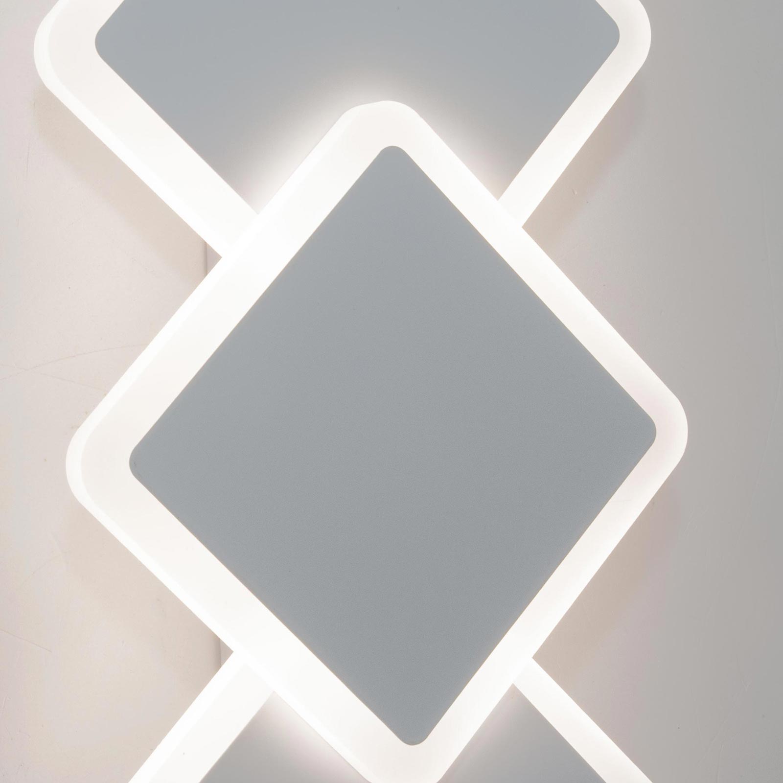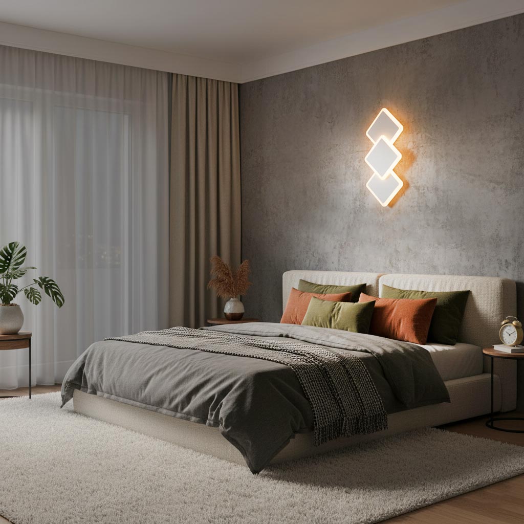 Applique moderno da parete con design decorativo a 3 rombi, ideale per illuminare ambienti interni come soggiorno, camera da letto, cucina, ingresso, ufficio. La struttura in alluminio bianco e il diffusore in acrilico opalino garantiscono una diffusione uniforme della luce, riducendo l’abbagliamento e creando un effetto luminoso piacevole e decorativo sulla parete. Il corpo compatto e il design geometrico rendono questa lampada LED da parete adatta a spazi moderni e contemporanei.